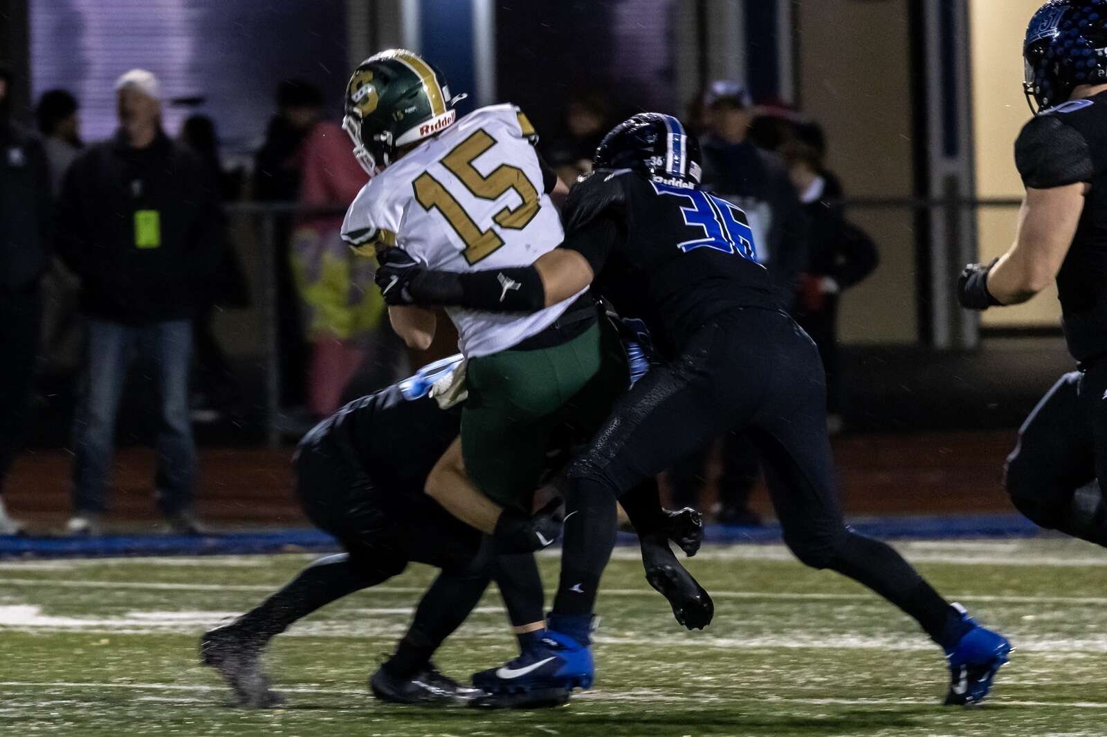 The Patriots’ inability to extend drives kept ending with Lincoln-Way East getting the ball back quickly and the Griffins knew what to do with it. Brody Gish started the second quarter with a 6-yard TD run and Williams added touchdown passes three and four to Schlinger and Matt Orban before the first unit left the game.