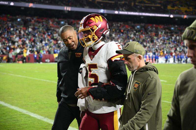 Commanders: Washington was without standout WR Terry McLaurin (quadriceps), and then the Commanders lost WR Luke McCaffrey (shoulder) almost immediately. CB Trey Amos (hip) and CB Marshon Lattimore (knee) were also hurt in the game, as was S Quan Martin (hamstring). Of course, Daniels' injury was the most significant.