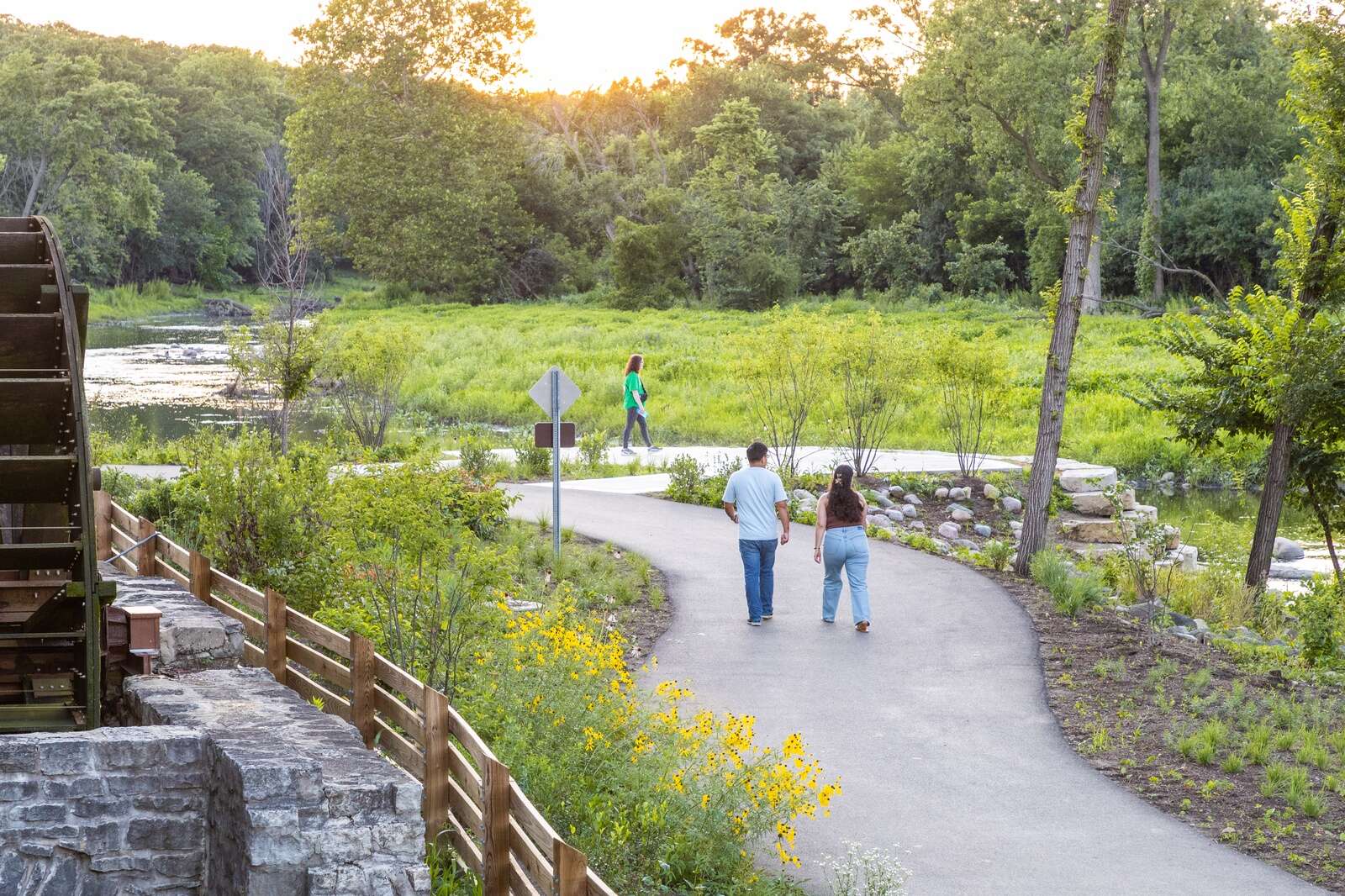 Life moves a little more leisurely in this forest preserve in Oak Brook, and so does the creek itself. “Going with the flow” reads a trail sign at the foot of an old gristmill.