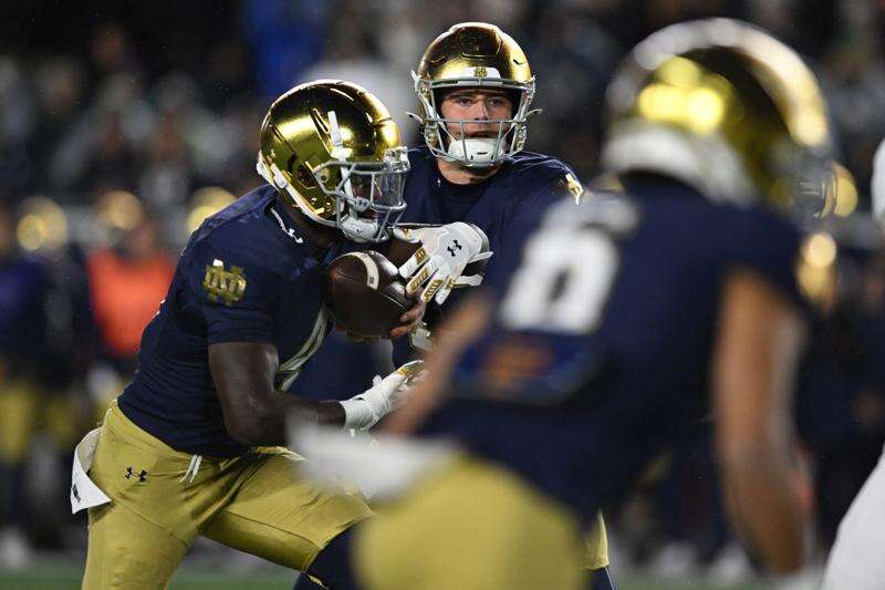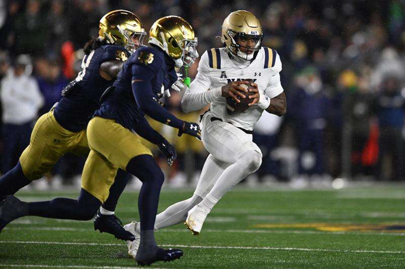 Carr throws 3 TD passes on snowy night to lead No. 10 Notre Dame past Navy 49-10