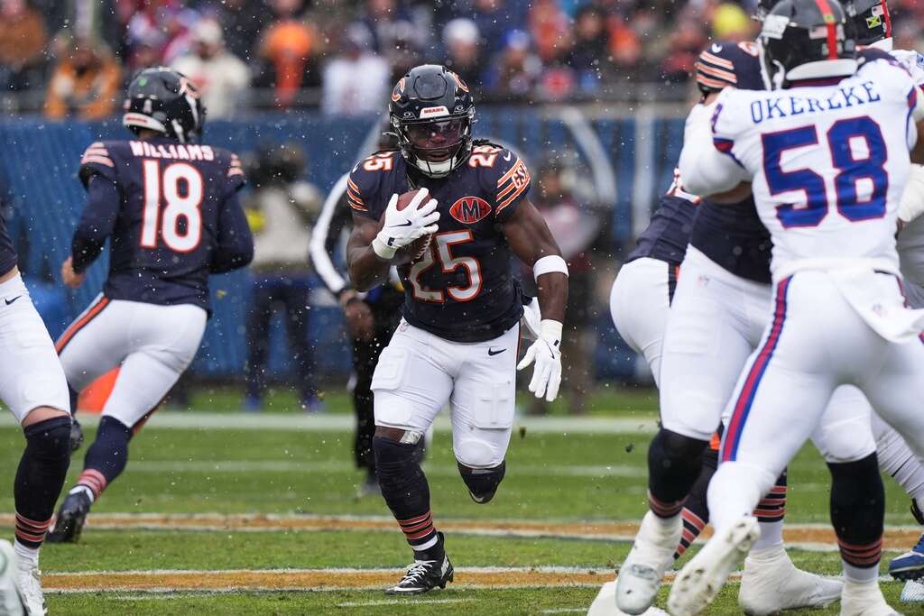 3. Throw to Rome: After wide receiver Olamide Zaccheaus dropped what would have been a 23-yard touchdown pass in the end zone, Williams kept the drive alive by hitting Odunze for 15 yards on third-and-9. It was Odunze’s third catch of the opening quarter, after he had none against Cincinnati the previous game. Running back Kyle Monangai finished the eight-play drive with a 12-yard TD run.