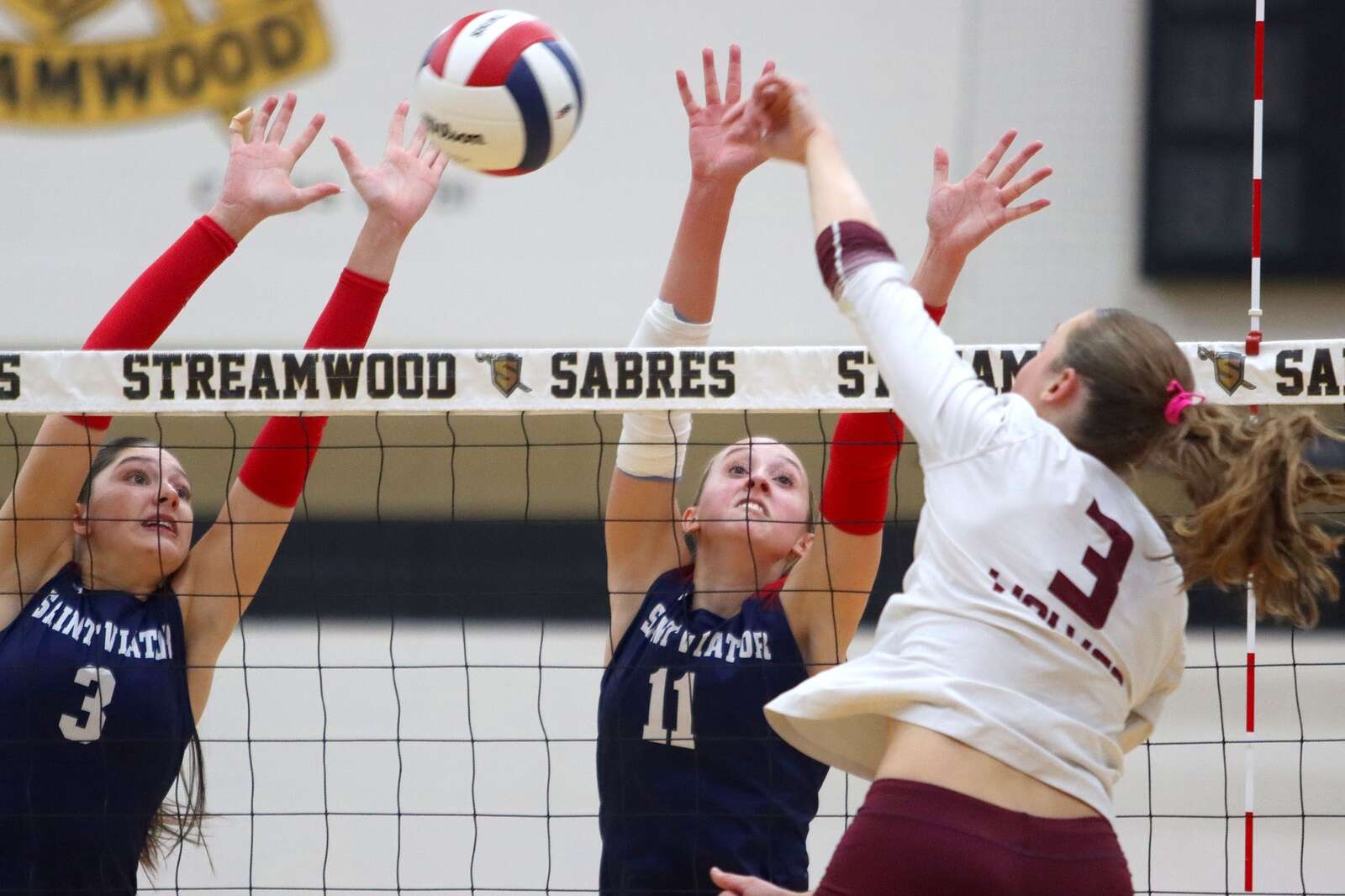 St. Viator was led offensively by senior outside hitter Erin Lynch (the team’s all-times kills leader) with 13 kills, a block and an ace and senior Avery Albritton (six kills, four blocks). Walberg, a junior, had six kills and three blocks, senior Grace Geary had five kills and three blocks, and senior Mary Francl posted six kills.