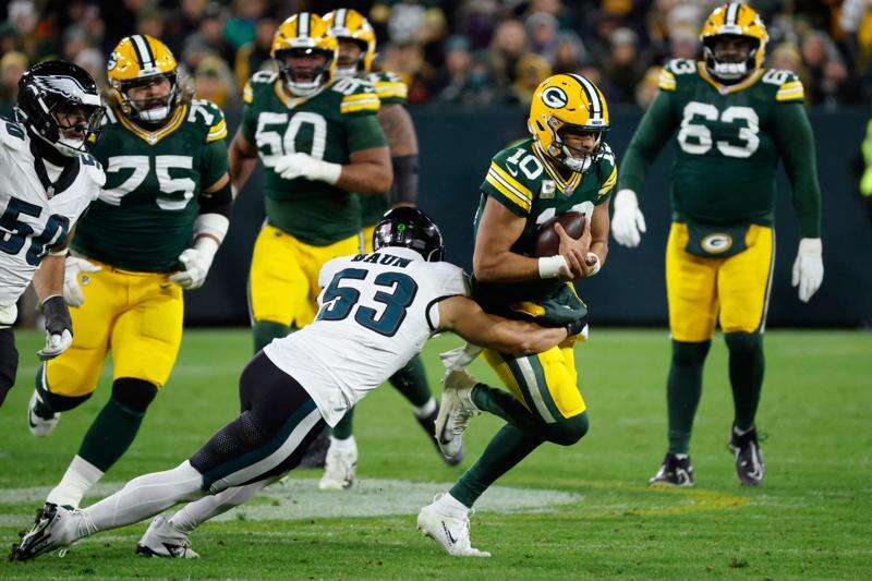 The Packers had second-and-10 at Philadelphia’s 27 in the final minute of the second quarter when Love lost the ball while getting sacked by Nakobe Dean. The fumble was recovered by Jaelan Phillips, who was making his Eagles debut after coming over from Miami at the trade deadline last week.