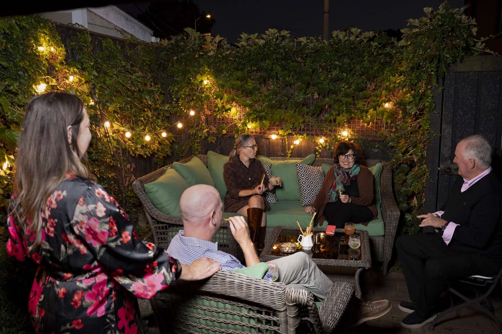 Guests mingle on the patio before the meal. Marvin Joseph, The Washington Post