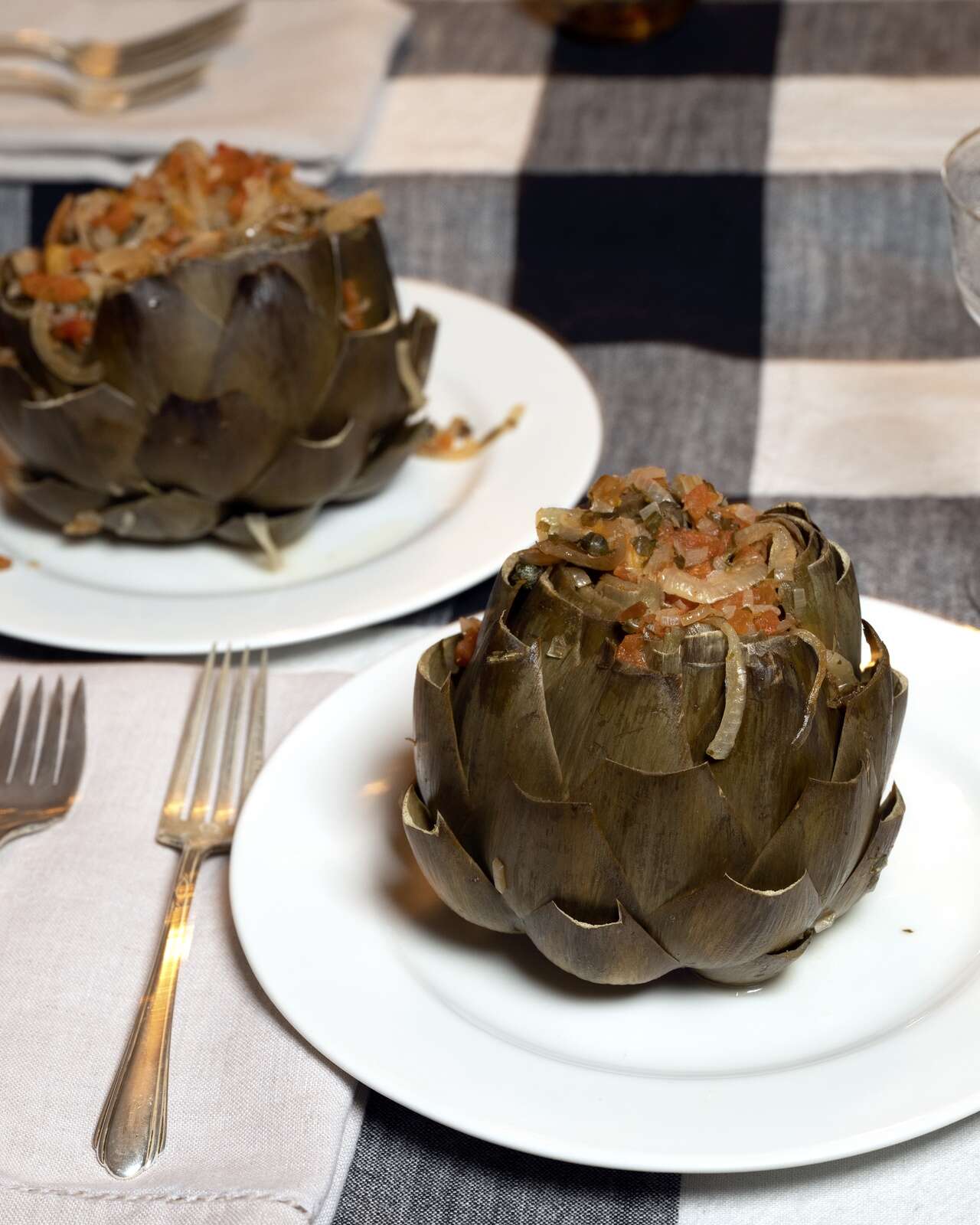 Then there was the matter of cleaning the devilish vegetables. It had been ages since I had prepped a whole artichoke. Several YouTube tutorials were of little help, and after a panicky series of messages, I hopped on an emergency video call with assistant recipes editor Olga Massov. She coached me (and buoyed my confidence), but the whole ordeal of scooping out the hairy cores and trimming the leaves took me well over an hour and left my hands with tiny scratches from the artichokes’ pointy bits. I’m fairly certain that artichokes, with their tough armor and finger-slicing leaves, would really prefer to be left alone — and I’m happy to oblige from here on out.