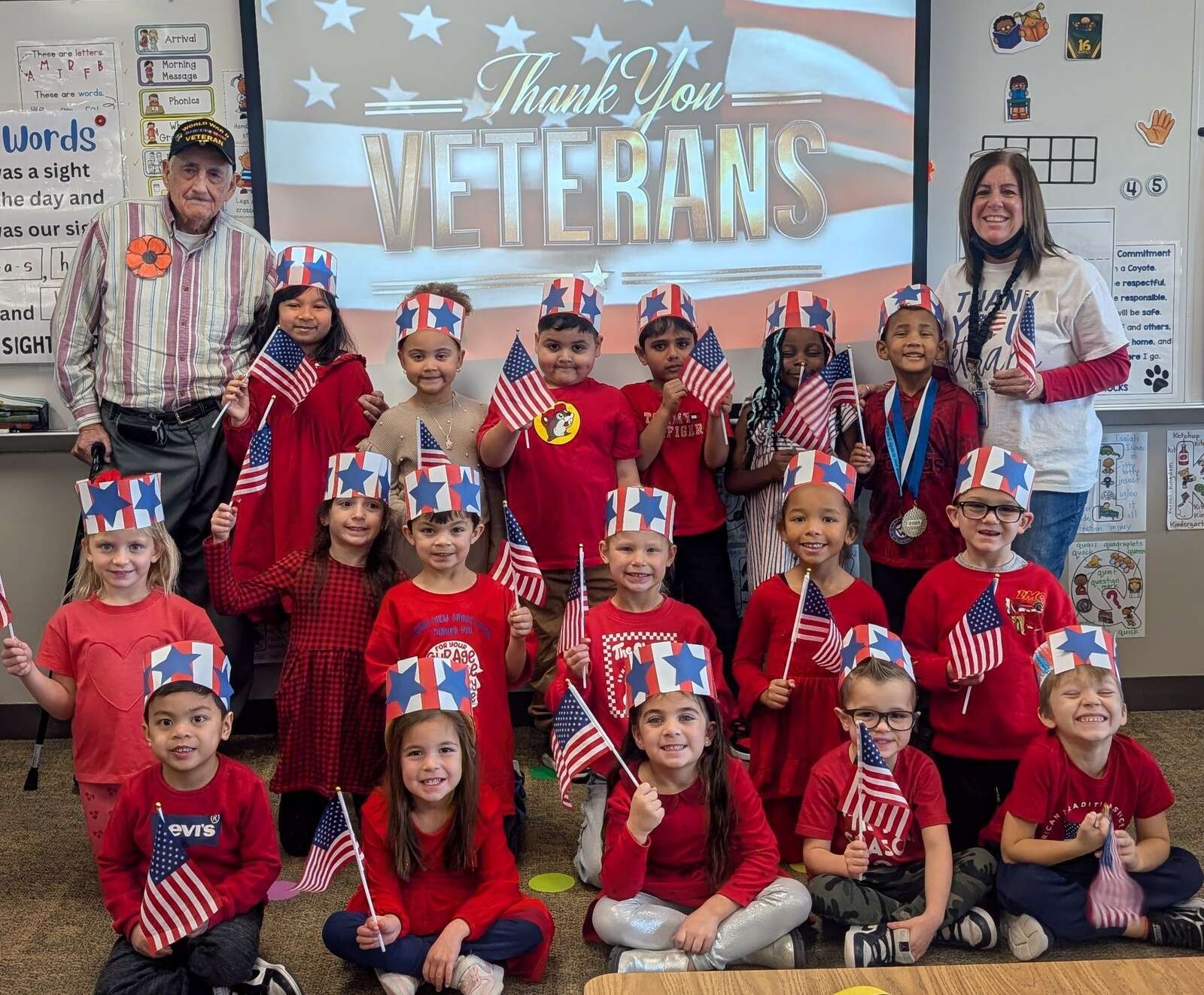 Students at Prairie View Grade School in Elgin were treated to an opportunity to meet World War II U.S. Army veteran Herbert Booth, the 100-year-old grandfather of kindergarten teacher Amy Iwanski.