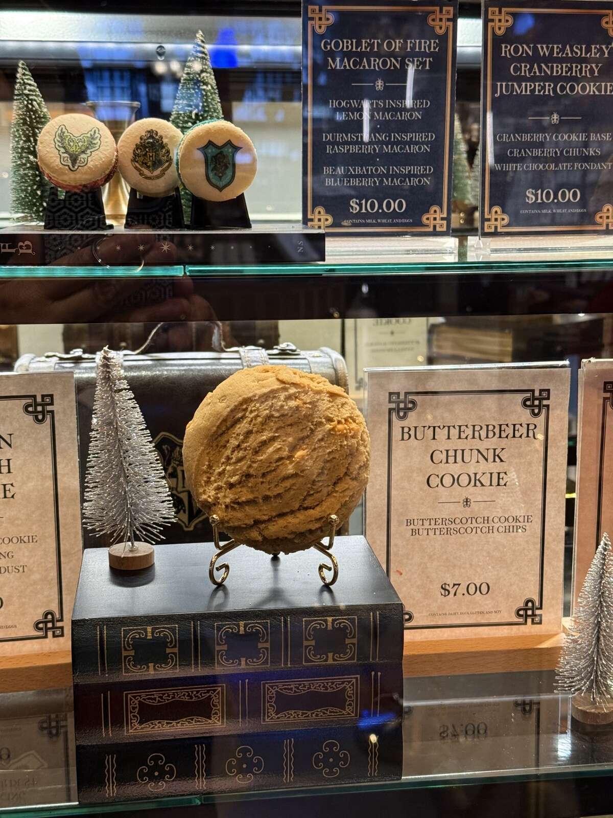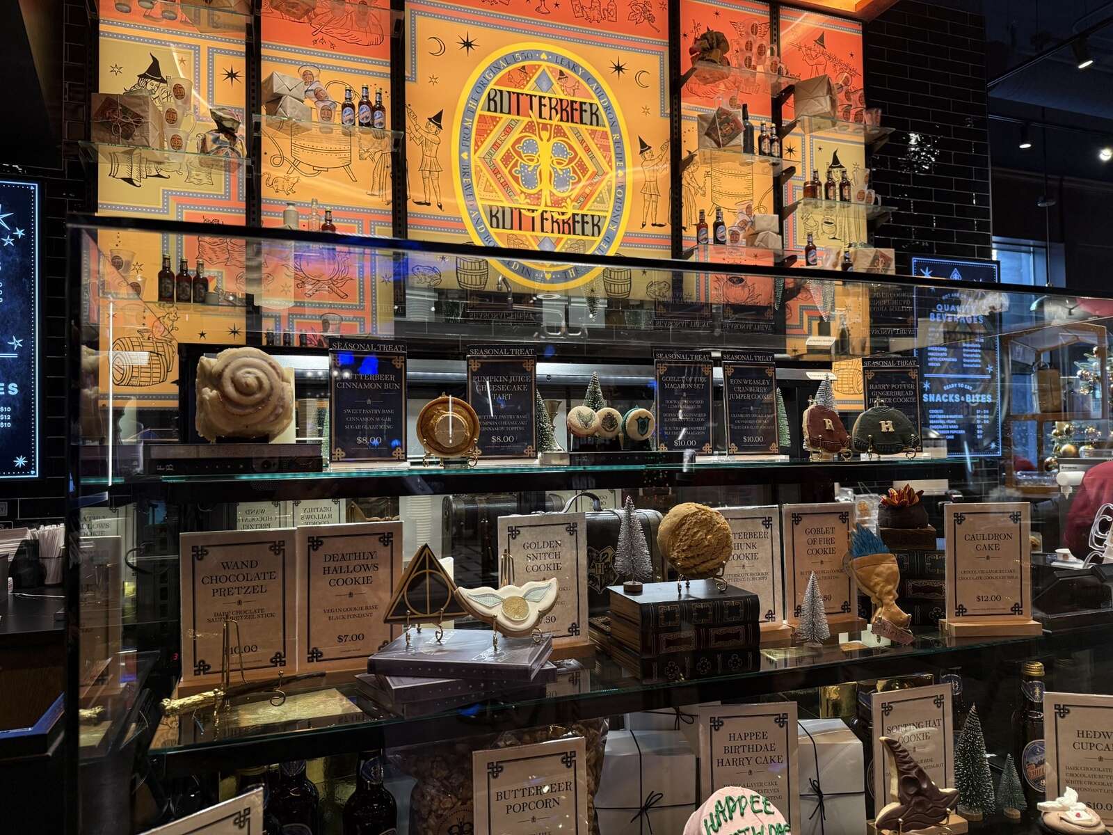 Aside from the hot Butterbeer, the store’s holiday menu includes macarons representing Hogwarts houses, Butterbeer popcorn, and other confectionery items highlighting elements of the “Harry Potter” book series.