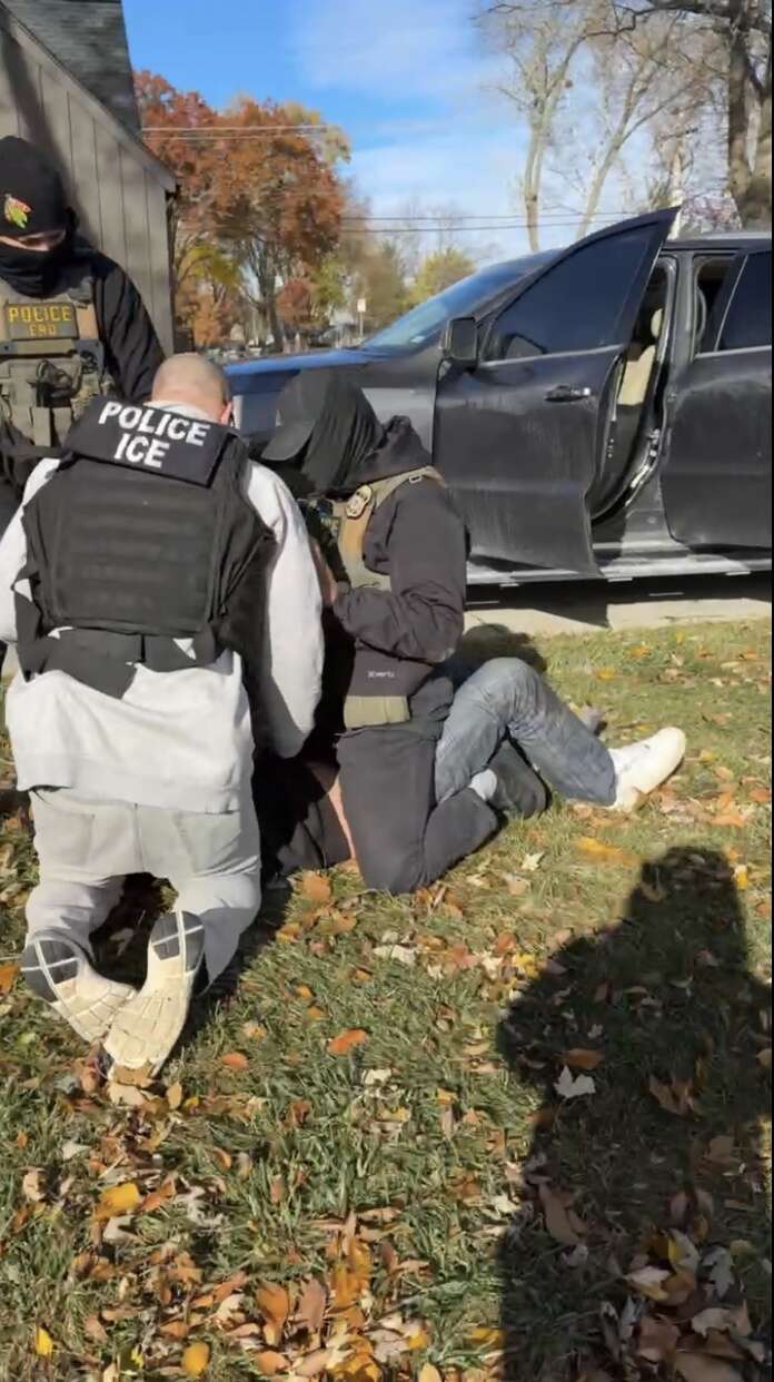 Resident Jennie Lussow captured video of two masked men, armed with guns and wearing U.S. Immigration and Customs Enforcement-branded vests, detaining a man Monday afternoon at the corner of Colfax and Schiller streets, about two blocks from the school.