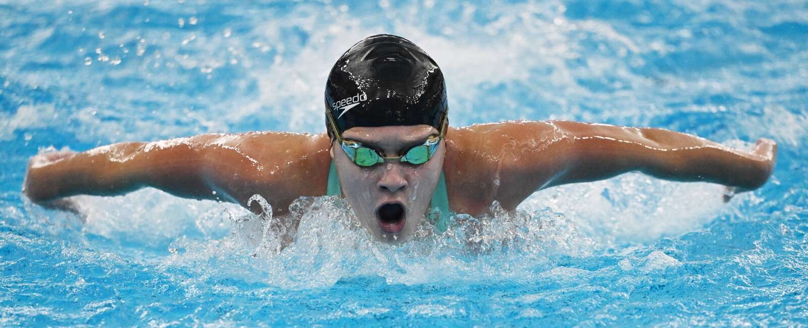 Stevenson’s Clair Wang swims the 100-yard butterfly during the girls state swimming preliminaries at the FMC Natatorium on Friday, Nov. 14, 2025 in Westmont. Joe Lewnard/jlewnard@dailyherald.com