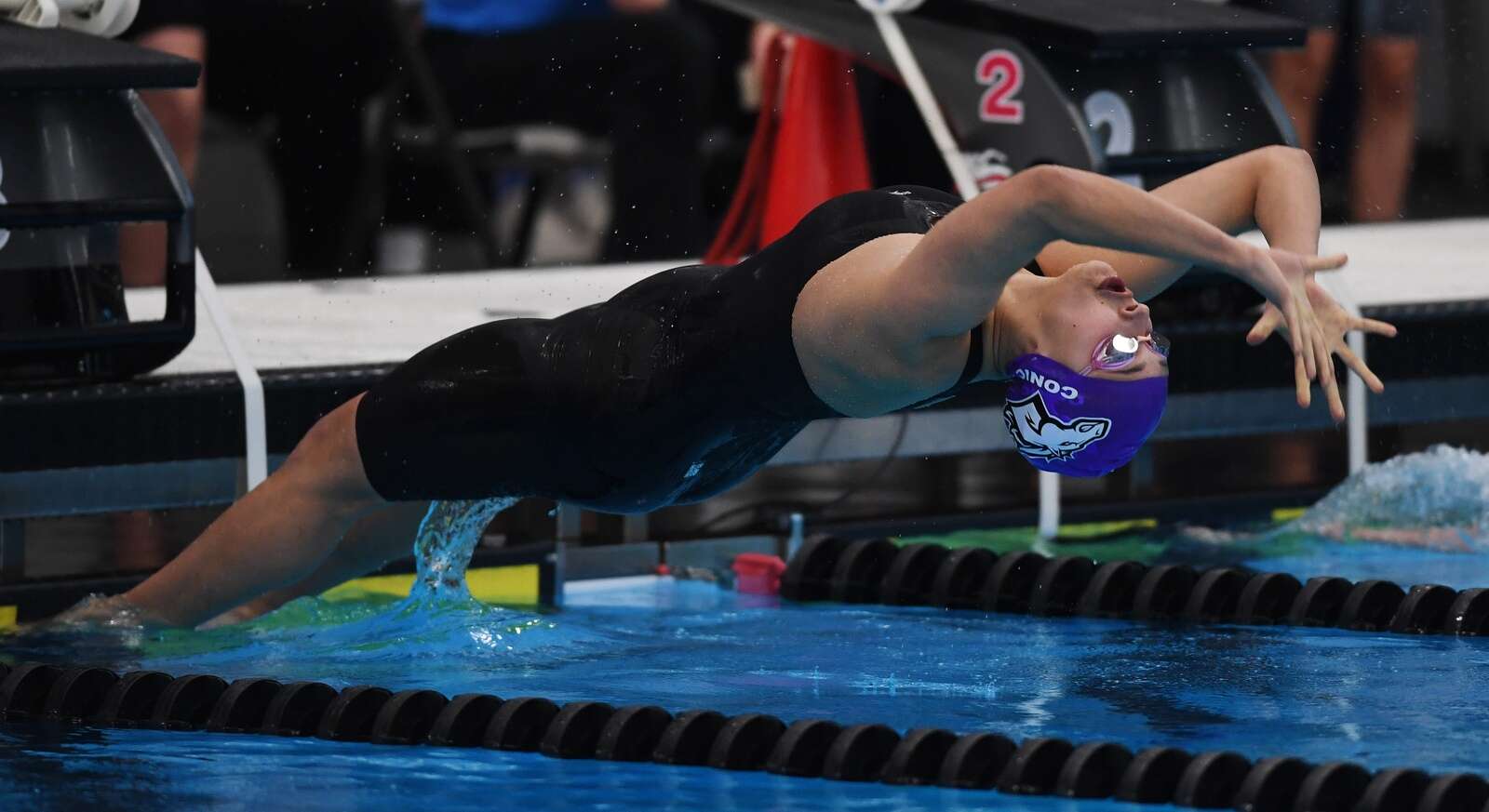 St. Charles North’s Kate Farrell leaves the starting block in the 500-yard freestyle during the girls state swimming preliminaries at the FMC Natatorium on Friday, Nov. 14, 2025 in Westmont. Joe Lewnard/jlewnard@dailyherald.com