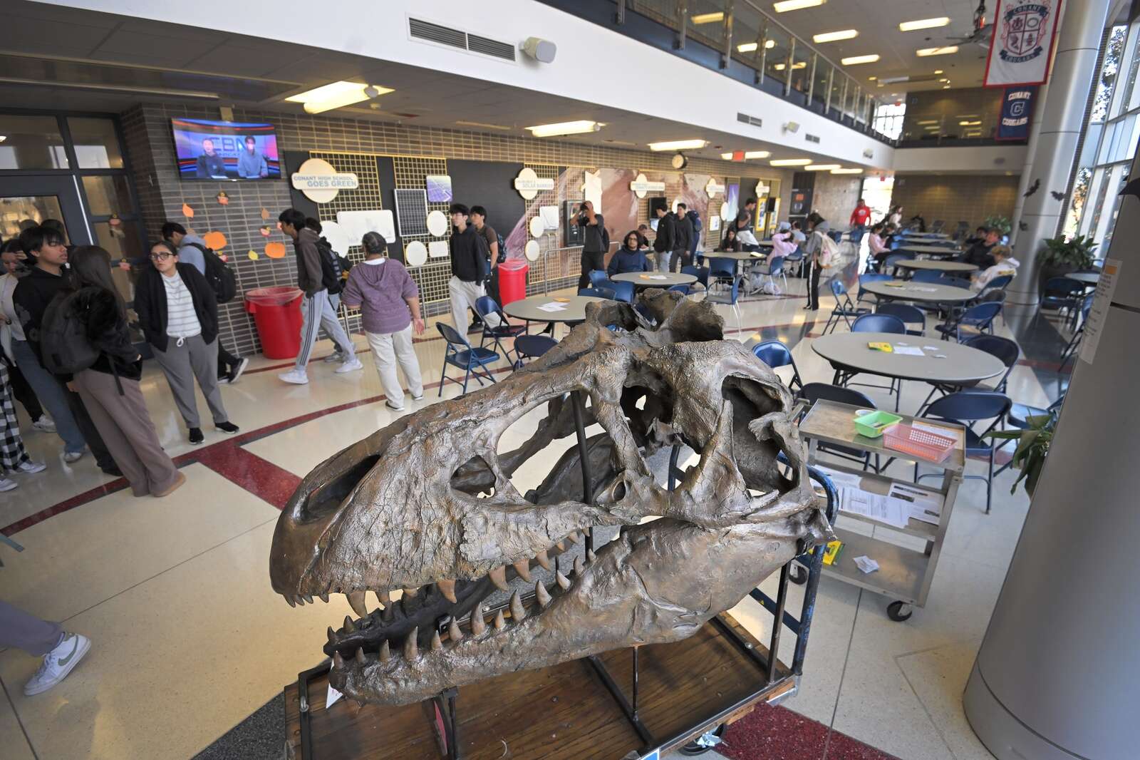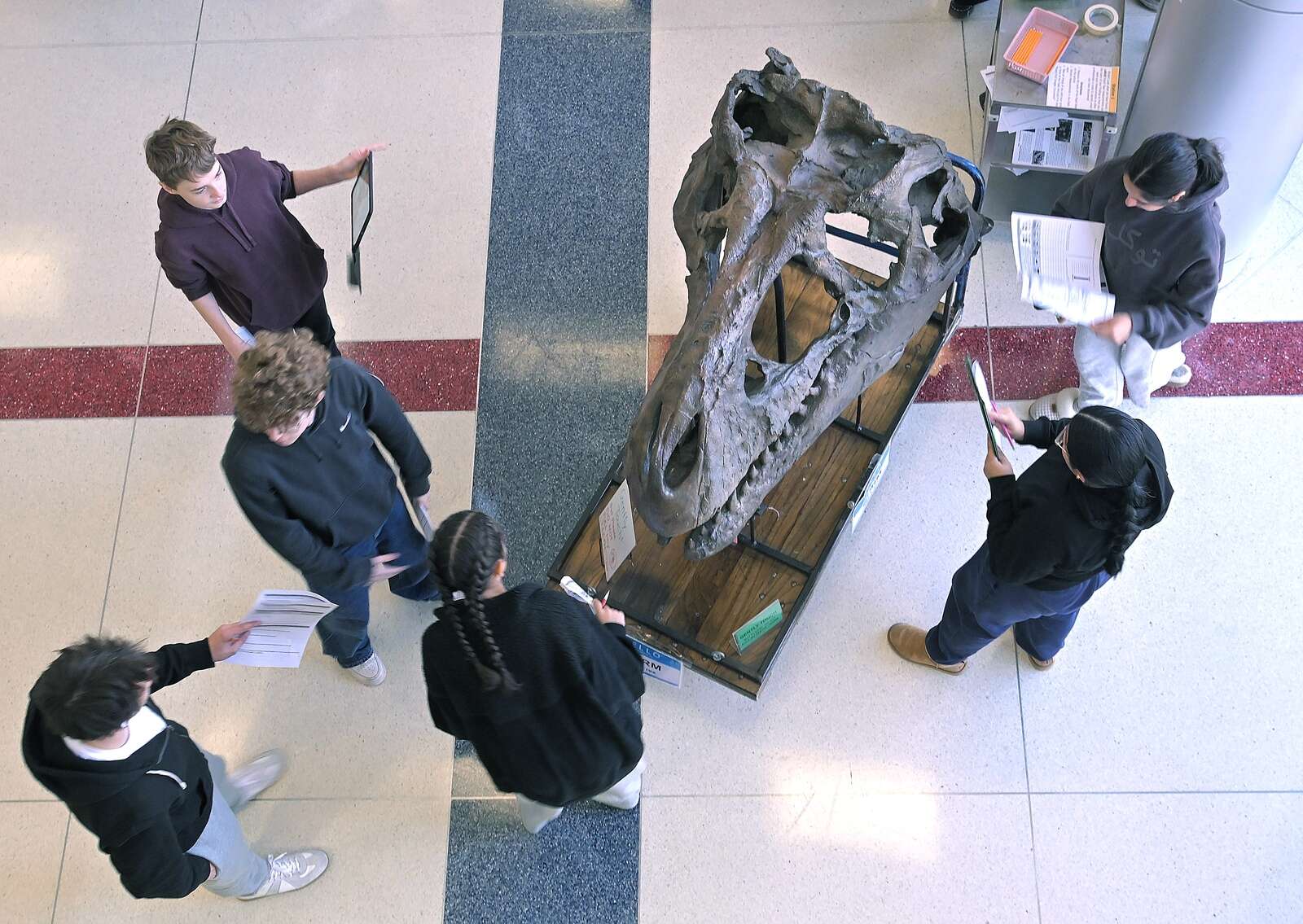 A fiberglass replica of the head of a nearly 70-million-year-old fossil is fueling the curiosity among James B. Conant High School students.