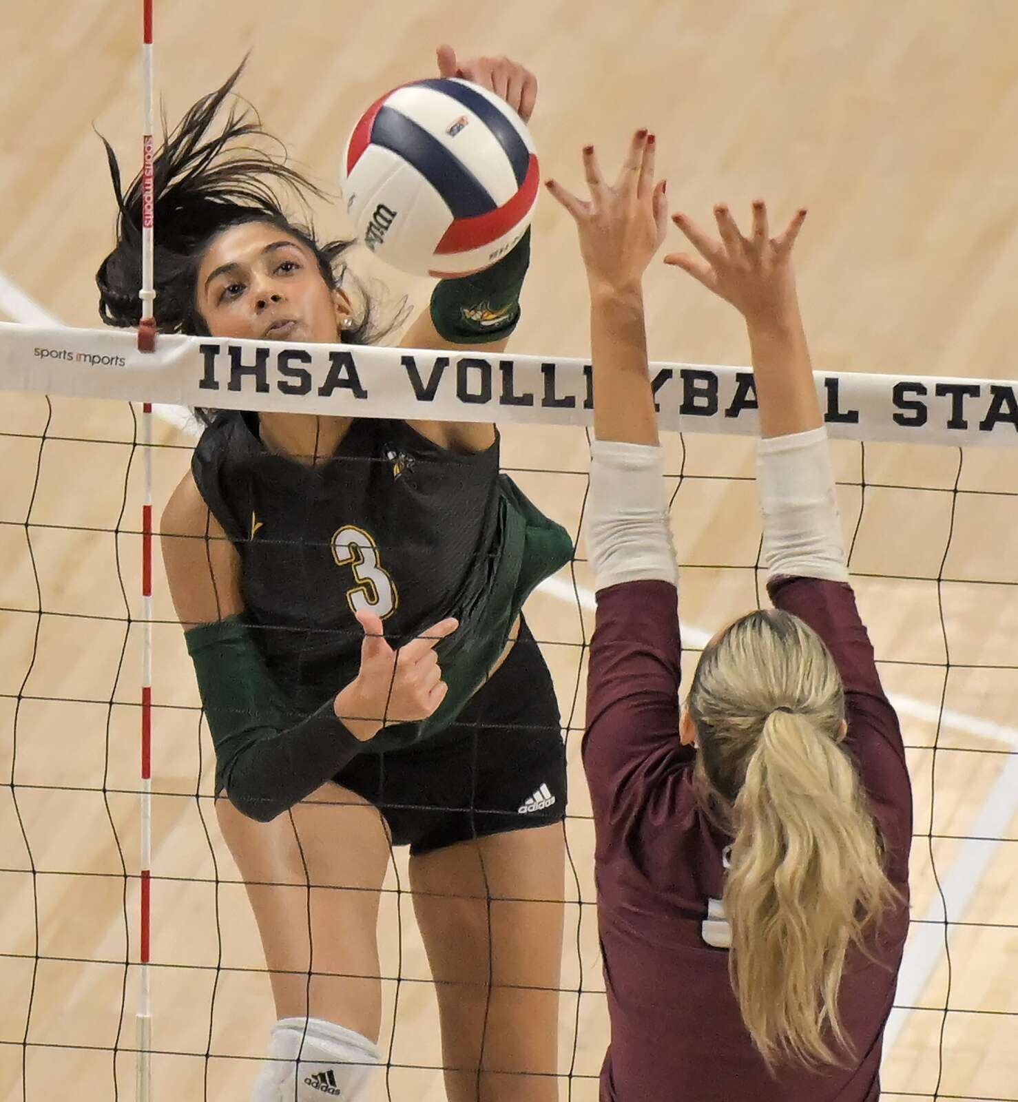 Fremd sophomore Harper Neill, a two-year starter, wasn’t fazed by the bright lights at state. The 5-foot-9 Harper repeatedly pounded down kills to fuel the Vikings’ offense, ending with 18 kills and 8 digs.
