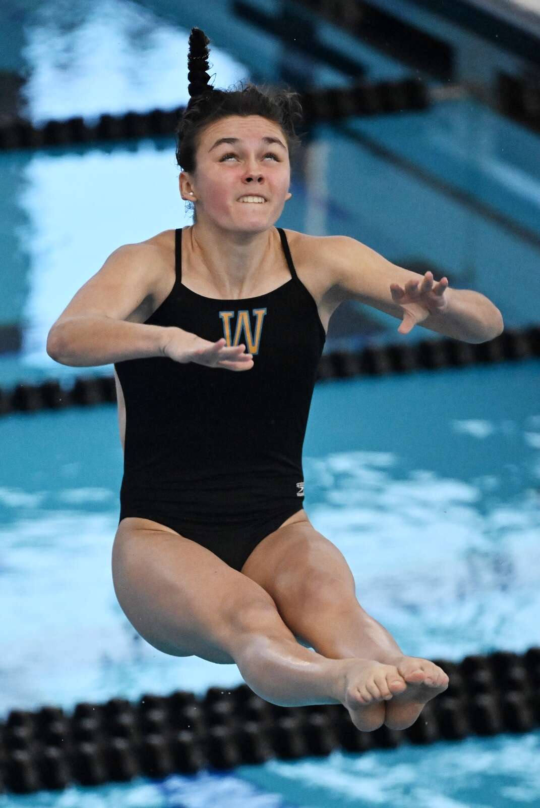 Buffalo Grove diver Allison Houston competes during the girls state swimming and diving finals at the FMC Natatorium on Saturday, Nov. 15, 2025 in Westmont.