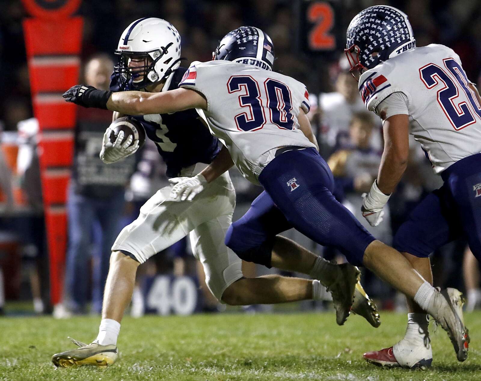Early in the second quarter, Belvidere North got another big play, this time from its option offense. Quarterback Andrew Bucci hit Nathan Alexander on a play-action toss over the middle for a 71-yard score — the Thunder’s only pass of the game — and it was 14-0.