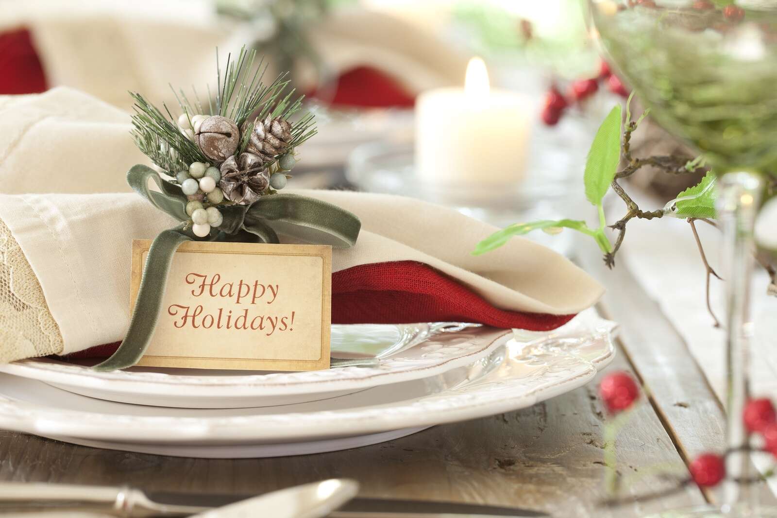 When it comes to items that are typically included in a holiday formal table setting, Amanda Van Der Moere with Crystal Signature Events says the standard configuration is “3-2-1,” meaning three forks, two knives and one spoon, plus a napkin, water glass, white wine glass, red wine glass and bread and butter plate. For a less formal meal, there may be less flatware, especially if you choose buffet service.