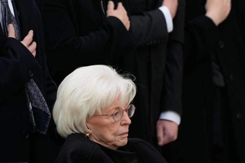 Wife of former Vice President Dick Cheney, Lynne Cheney and family preside over the arrival of the casket of former Vice President Dick Cheney at the Washington National Cathedral, Thursday, Nov. 20, 2025, in Washington. (AP Photo/Mark Schiefelbein) (AP Photo/Mark Schiefelbein)