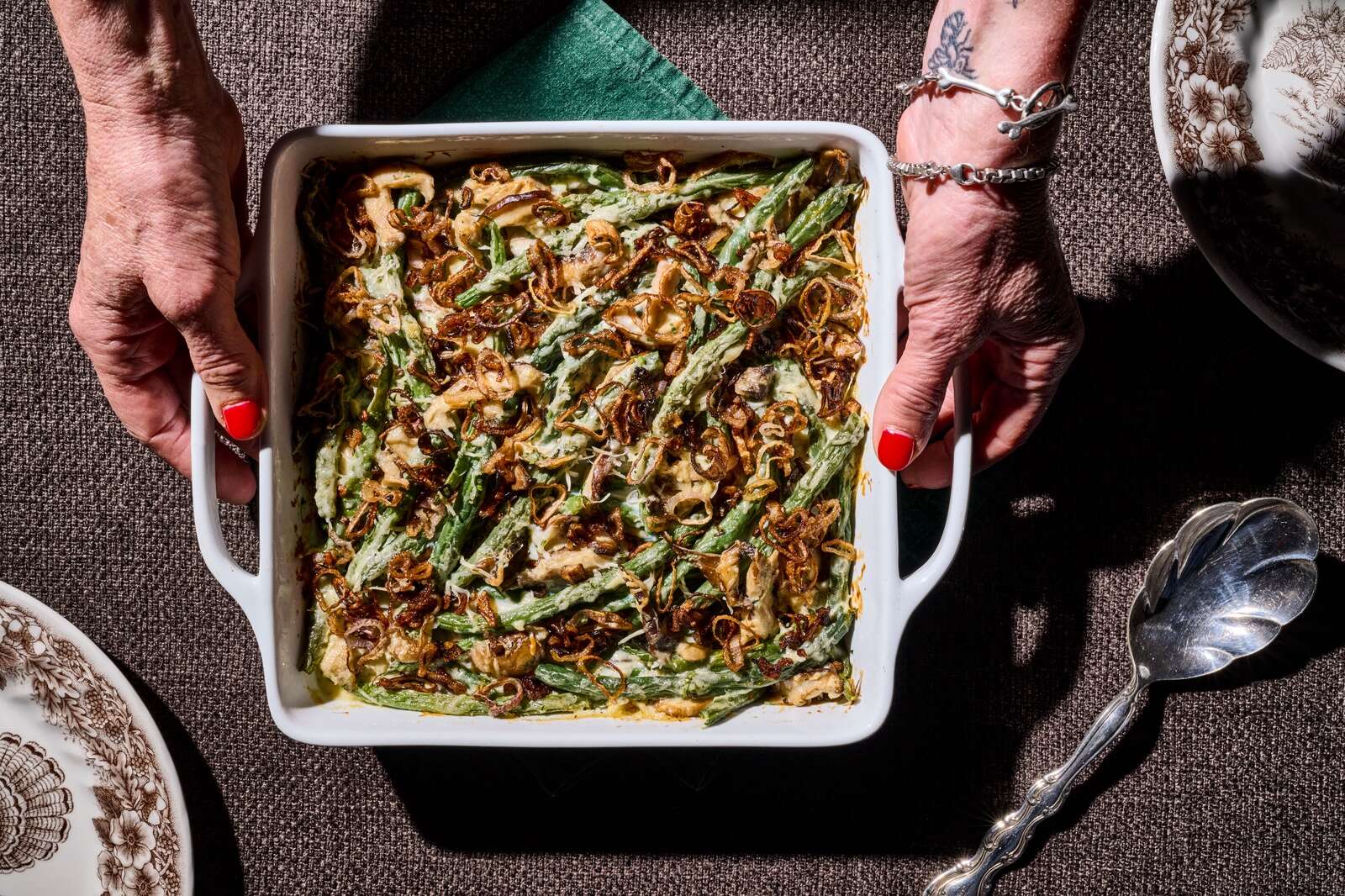 The finished dish feels familiar yet enhanced, tasting of the fresh ingredients it’s made of — crisp-tender green beans and meaty mushrooms in a fragrant creamy sauce, with a crunch from the shallots. It offers a refreshing new perspective on just how delightful the retro Thanksgiving favorite can be.
