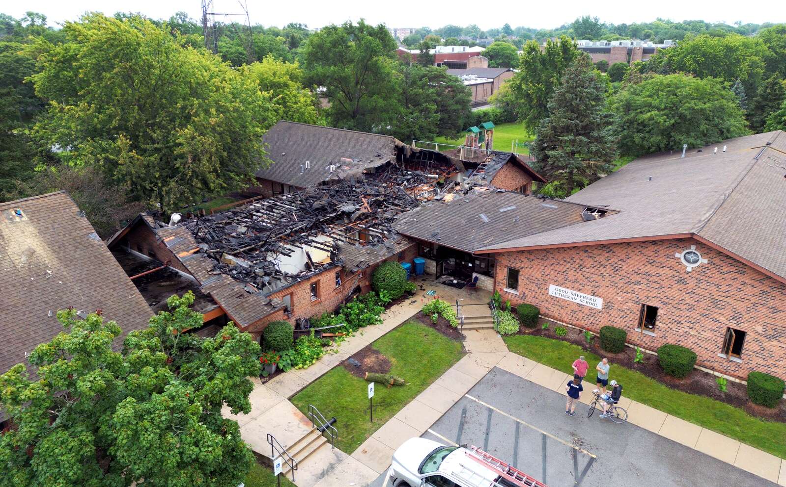 The fellowship hall and preschool connected Good Shepherd’s sanctuary wing and the Good Shepherd Lutheran Academy. The hall was a total loss, while the sanctuary took damage but can be repaired.