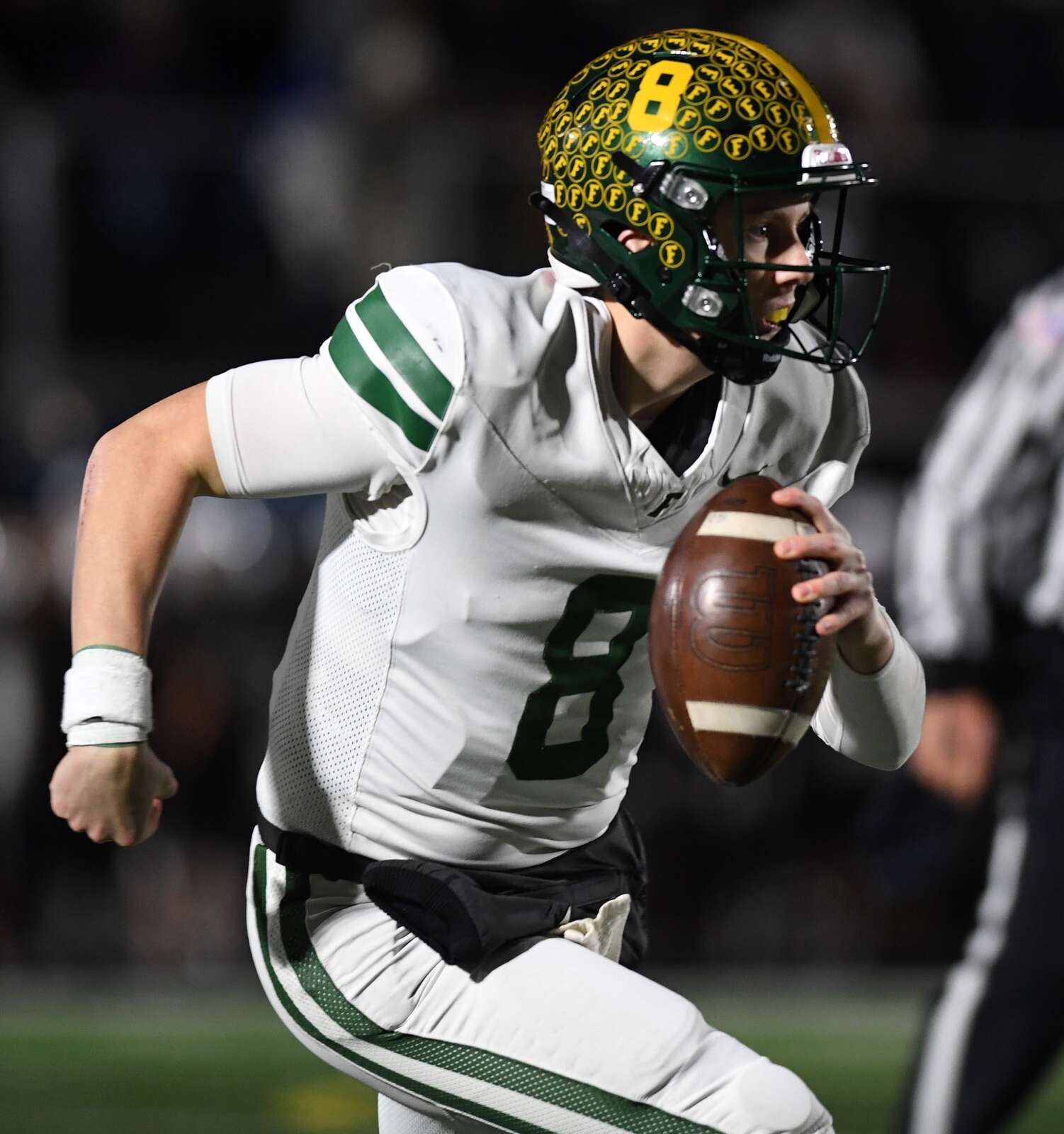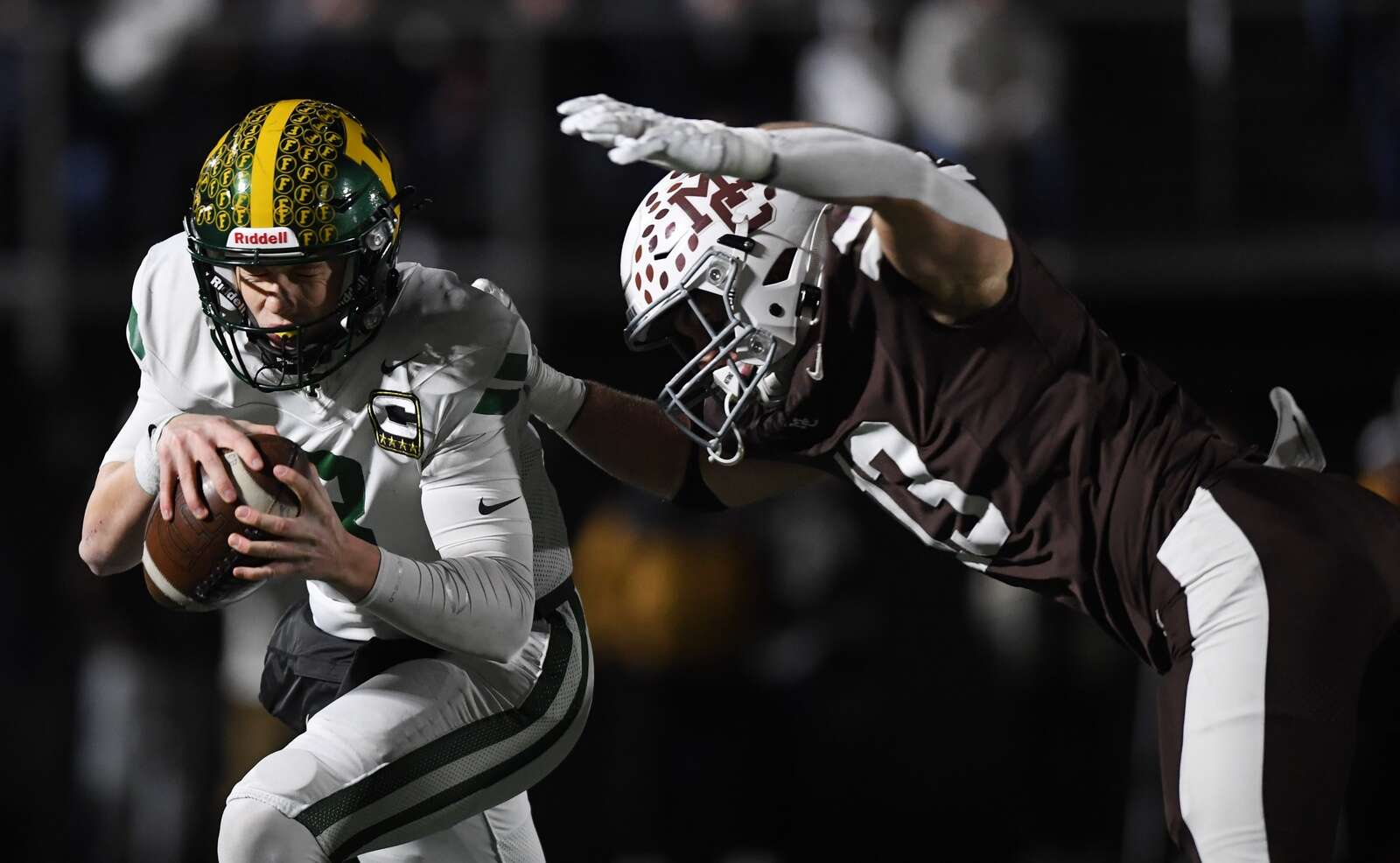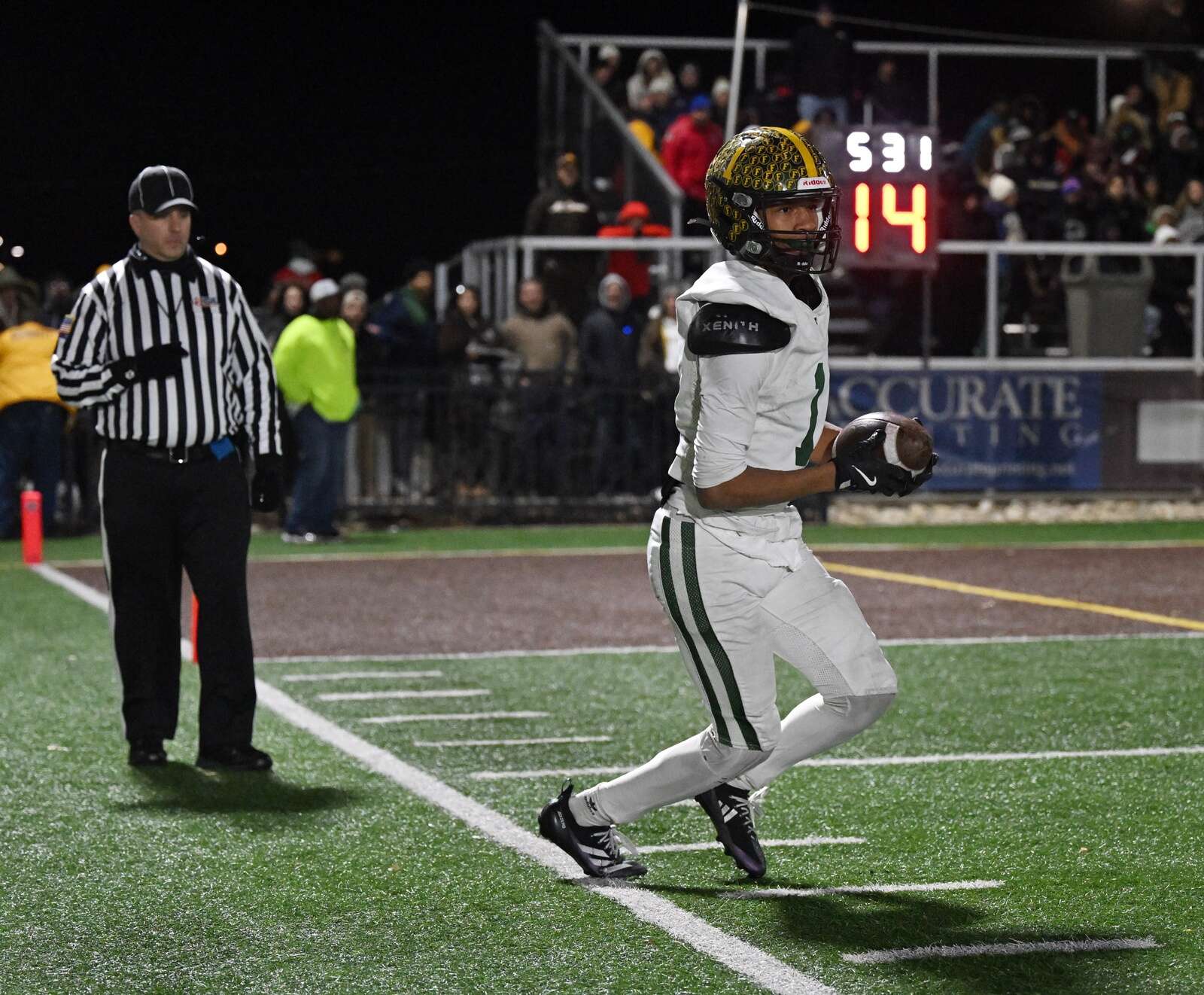 Mt. Carmel tried to set the tone early when the Caravan put together a 16-play, 68-yard touchdown drive. The Vikings didn’t go down easy as Carmel quarterback Emmett Dowling barely crossed the goal line on fourth-and-goal from the one to make it 7-0.