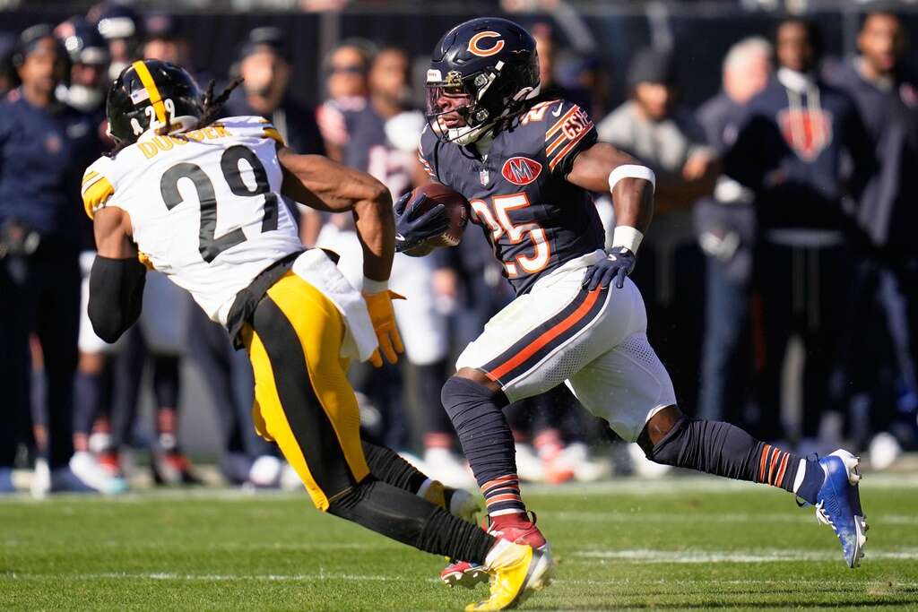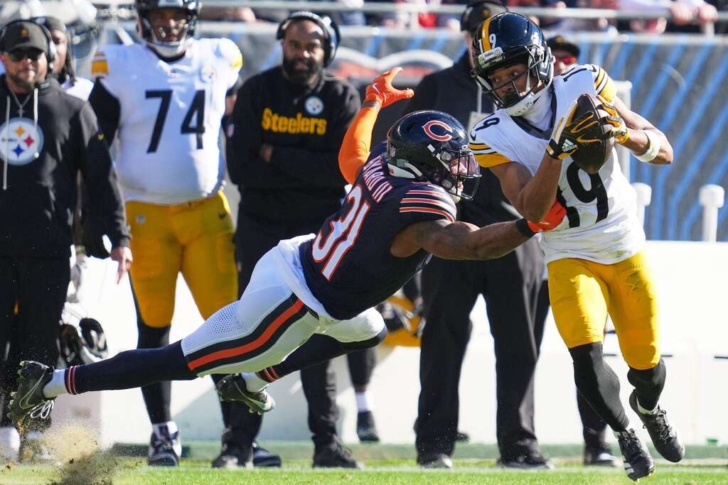 1. Taking advantage of A-Rod’s absence: The Steelers declared Bears nemesis Aaron Rodgers (broken left wrist) inactive about 90 minutes before kickoff. Veteran QB Mason Rudolph didn’t riddle the Bears defense, but he took advantage of what was given him. He completed 10 of 11 passes in the first half, with the only miss being Wright’s interception on a rare deep ball. Rudolph engineered a 17-play drive in the fourth quarter, capping it with a 3-yard TD pass to Pat Freiermuth with 6:27 left.