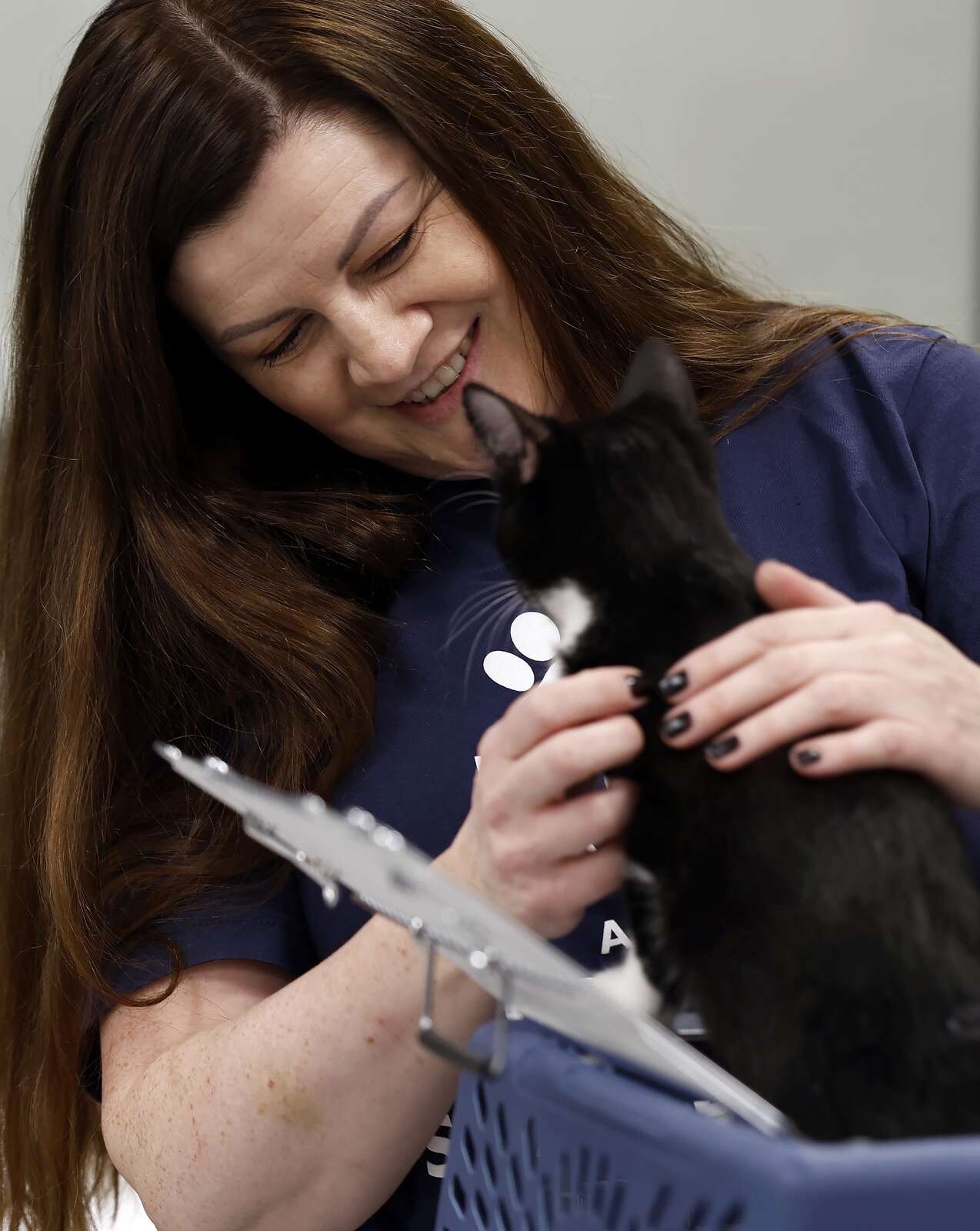 The cat feels safe with Agnieszka Bazan-Guzman — she goes by “Aga” — a volunteer with Animal Services and its recently expanded and refurbished shelter along Manchester Road.