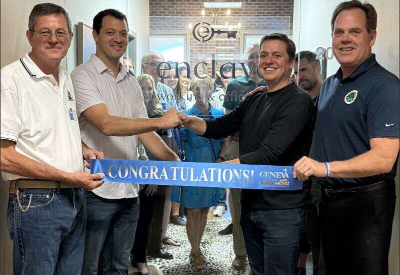 The Geneva Chamber of Commerce recently celebrated the grand opening of Enclave Coworking at 10 W. State St., Geneva. Chamber staff, ambassadors, Geneva Mayor Kevin Burns, chamber board Chair Michael Olson, and Enclave Coworking staff celebrated the grand opening with a ribbon-cutting Oct. 3.