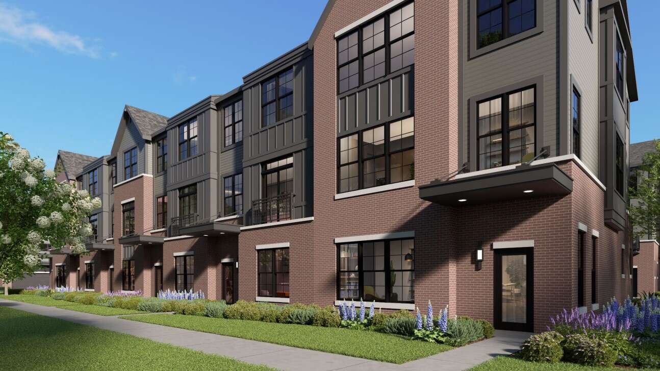 Each three-story townhouse would include a two-car garage. Pulte also intends to offer an option to build out a habitable attic space with an outdoor terrace, creating livable space on the fourth floor of a townhouse unit.
