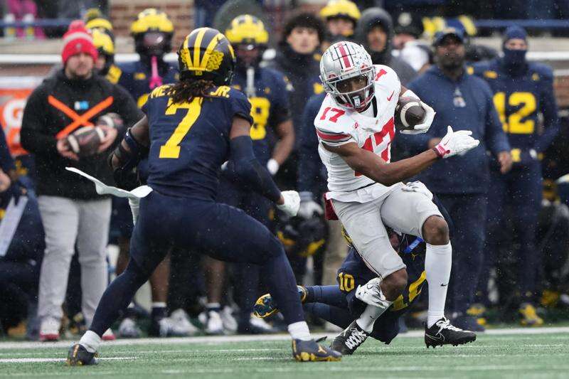 Sayin helped the Buckeyes pull away with a perfect pass to Carnell Tate for a 50-yard touchdown in the third quarter, lofting a ball over the receiver's shoulder after he got past Michigan’s secondary.