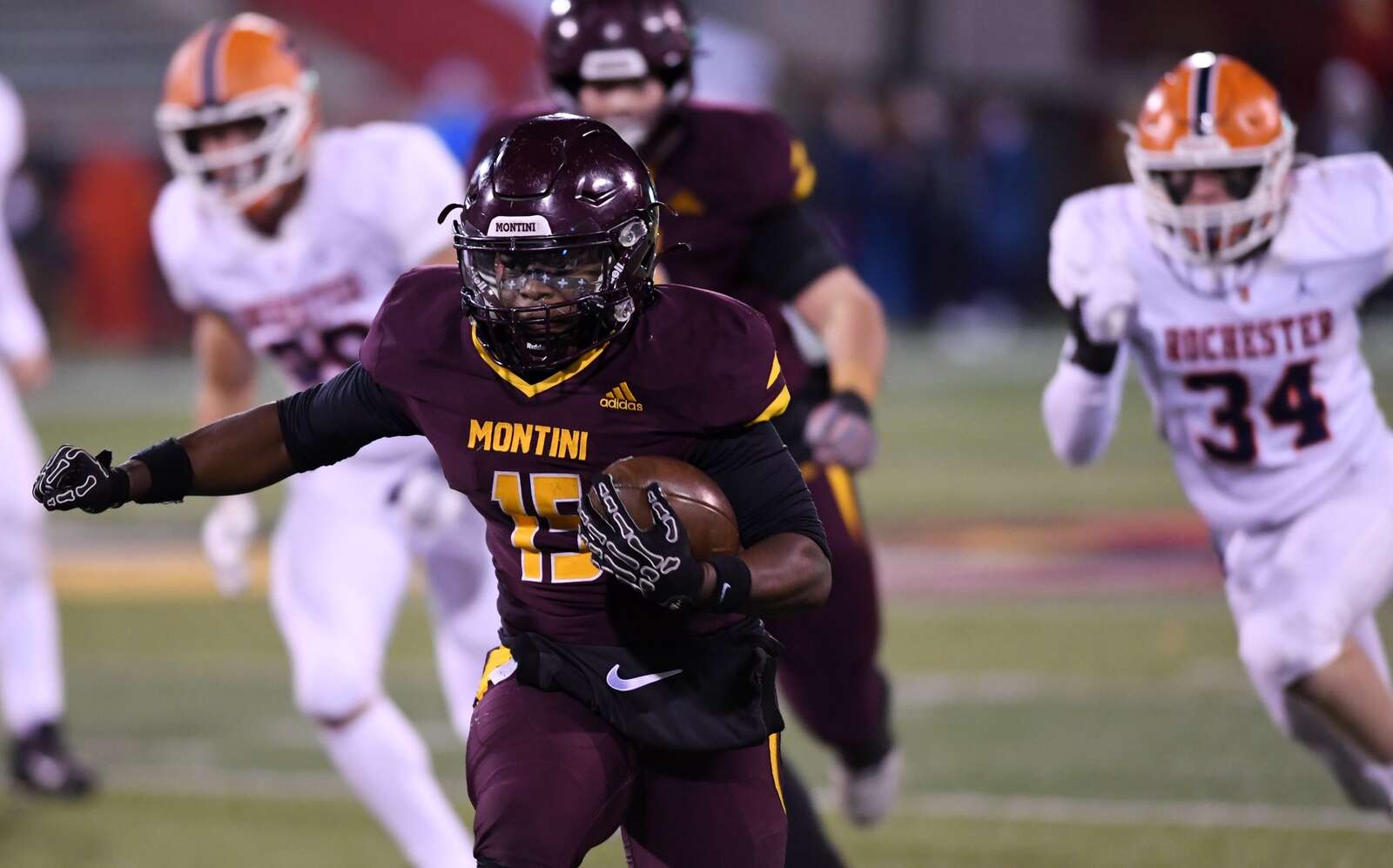 Images from the IHSA Class 4A Championship football game between Montini and Rochester Friday, Nov. 28, 2025 at Illinois State University’s Hancock Stadium in Normal. Montini won the contest 47 to 33.