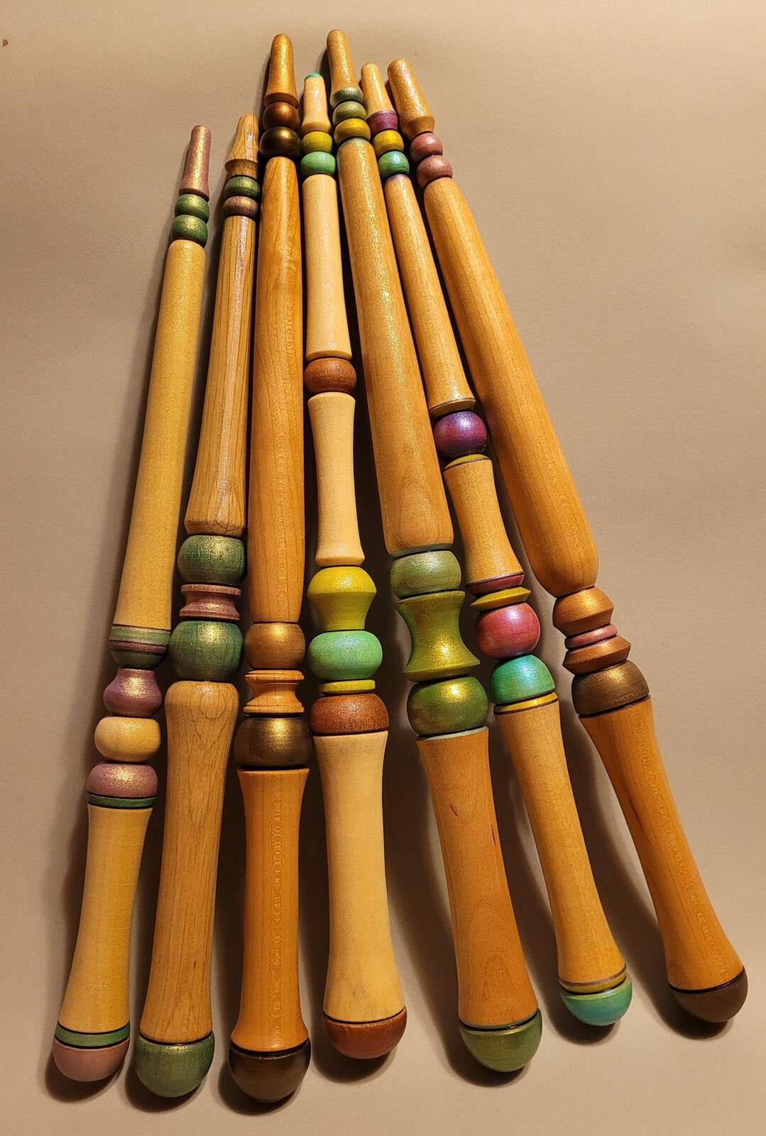 Several of this year's artists are working with wood, producing amazing items, including wall art by new artist Jim Reedy. Another new artist, Marie Anderson, is a wood turner whose items include spinning tops, which would make great stocking stuffers, and magical wands for the wizard in your life!