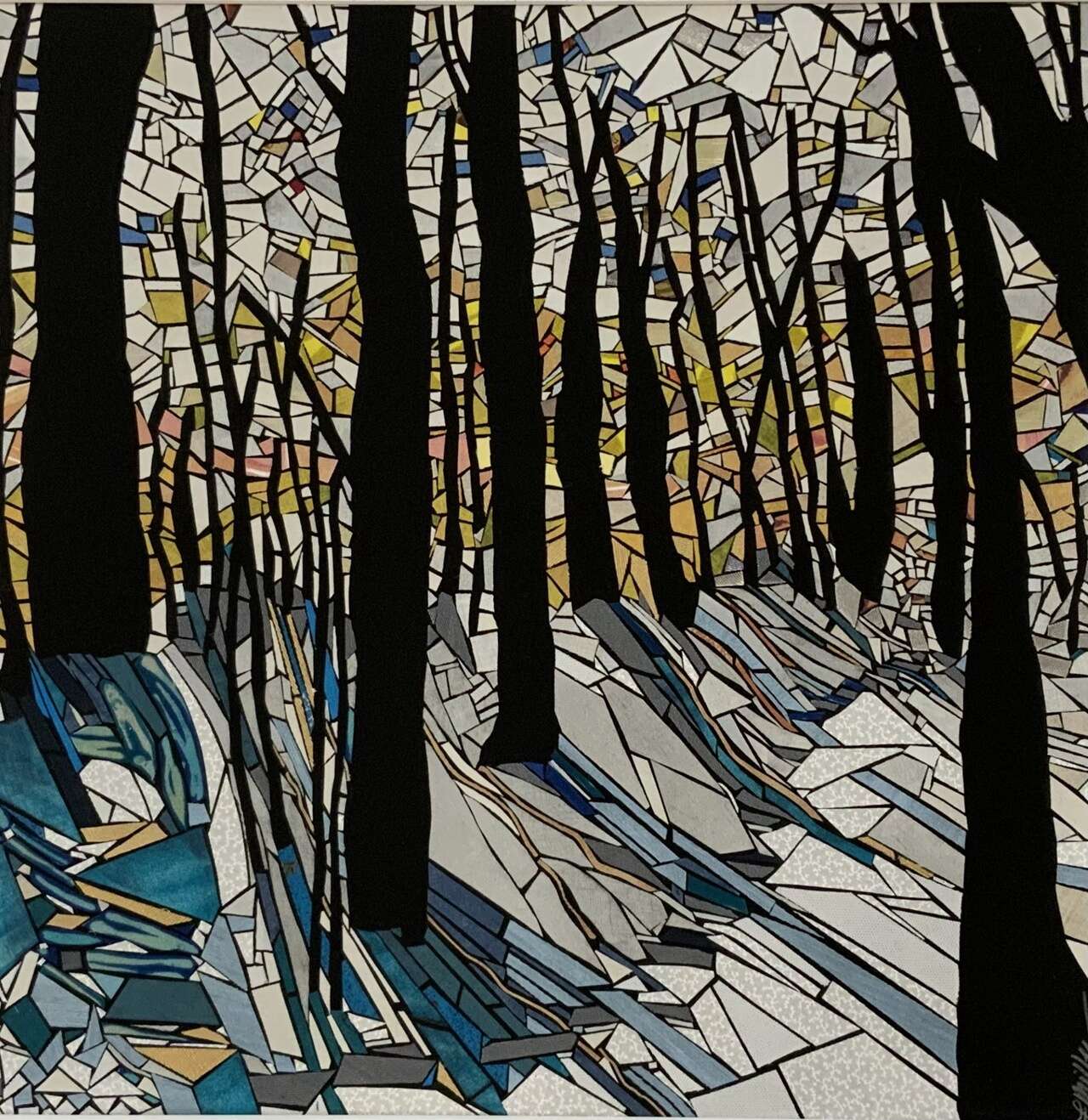 For example, Lori Miller creates collage pieces inspired by the mosaic format. Rather than traditional stone and tile, Miller uses fabrics and incorporates found objects to create cards and images. She will have a range of cards and framed pictures available at the event.