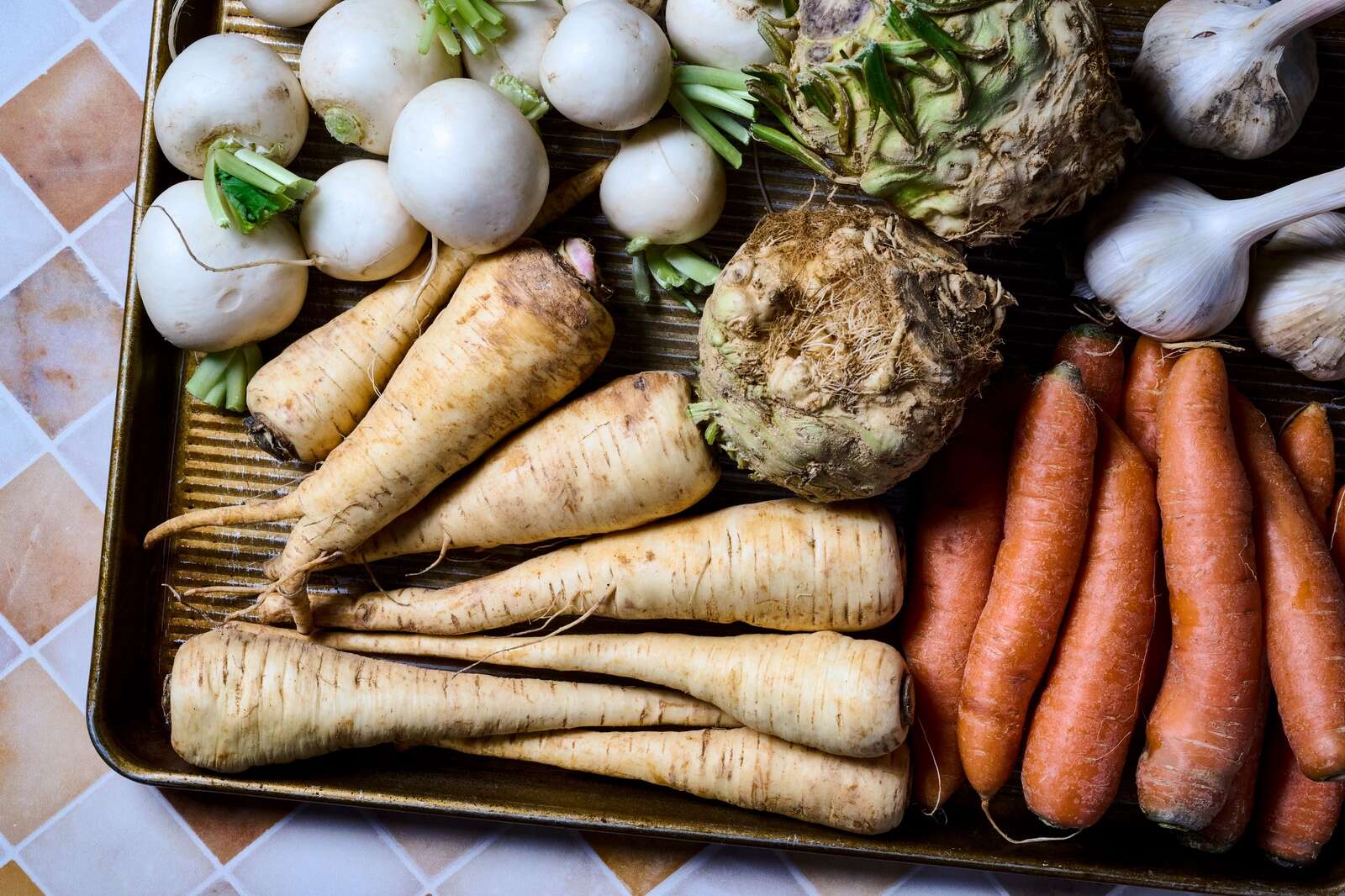 4 cups diced root vegetables, such as carrots, parsnips, celery root, rutabaga and turnips (½-inch dice)
