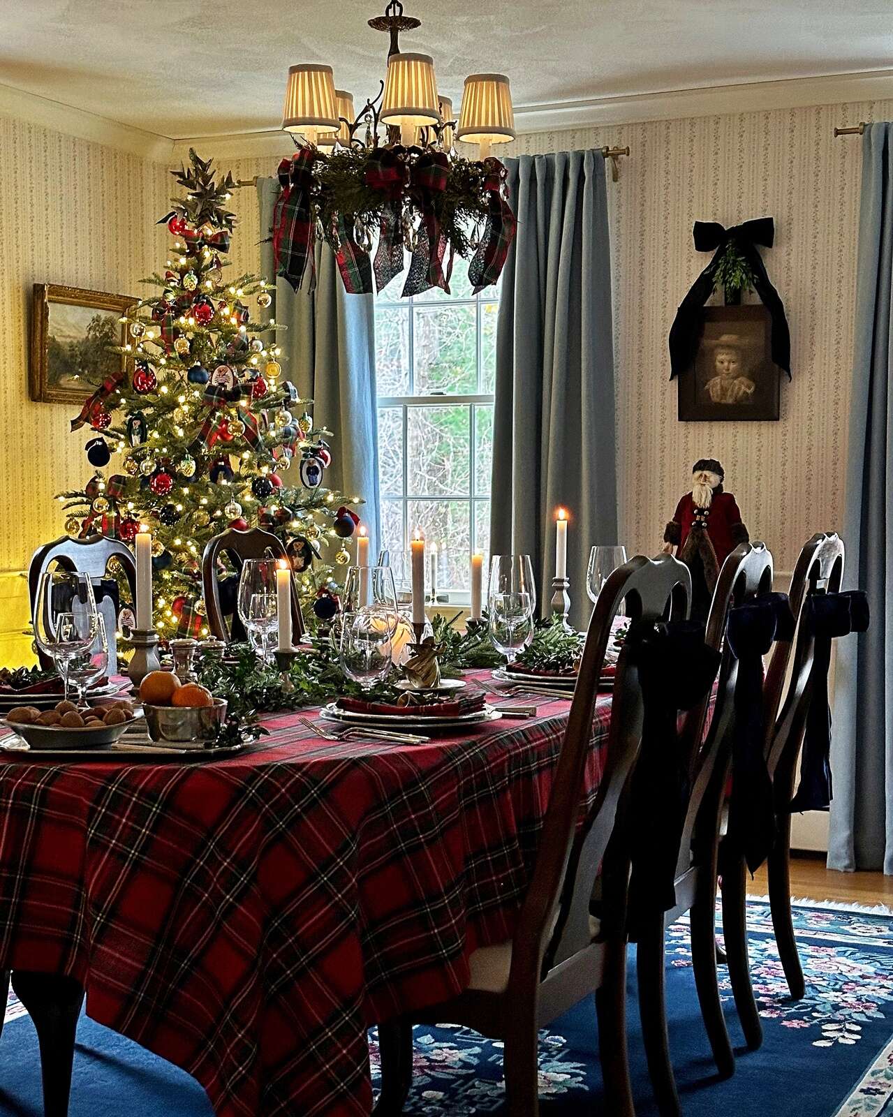 We’re talking lush greenery — starting with an ample tree and strands of garland — beneath layers of classic tartan, velvet, wool and leather; dark wood, brass and candles; and splashes of jewel tones such as burgundy, deep green and navy. Think “Miracle on 34th Street” or “Home Alone” as touchstones.