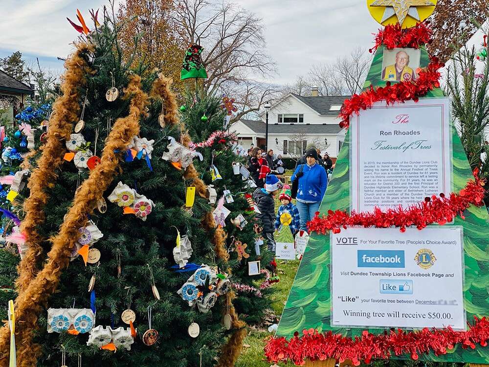 Trees are decorated on Friday between 11 a.m. and 5 p.m. The community is welcome to observe the decorating, have a cup of hot chocolate, and drop off a donation for the FISH Food Pantry. Trees are judged for creativity, beauty, and holiday spirit, with three Gold Awards and 3 Silver Awards given in each category. For the People's Choice Award, vote for your favorite on the Dundee Township Lions Club Facebook page.