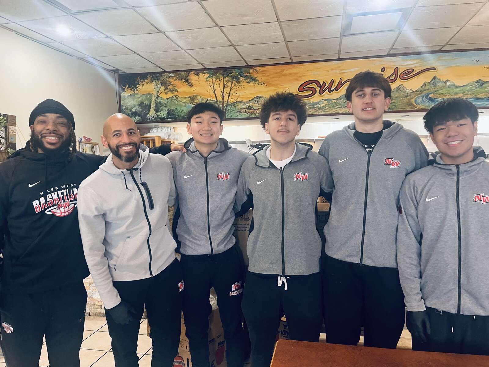 Also, 15 Niles West basketball players and assistant coach Michael Sneed helped put together boxes, slice the pumpkin pie and pack the meals for delivery.