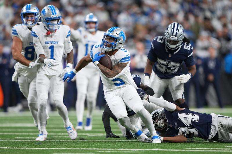 Jahmyr Gibbs rushes for 3 TDs and Lions get much-needed 44-30 win over Cowboys