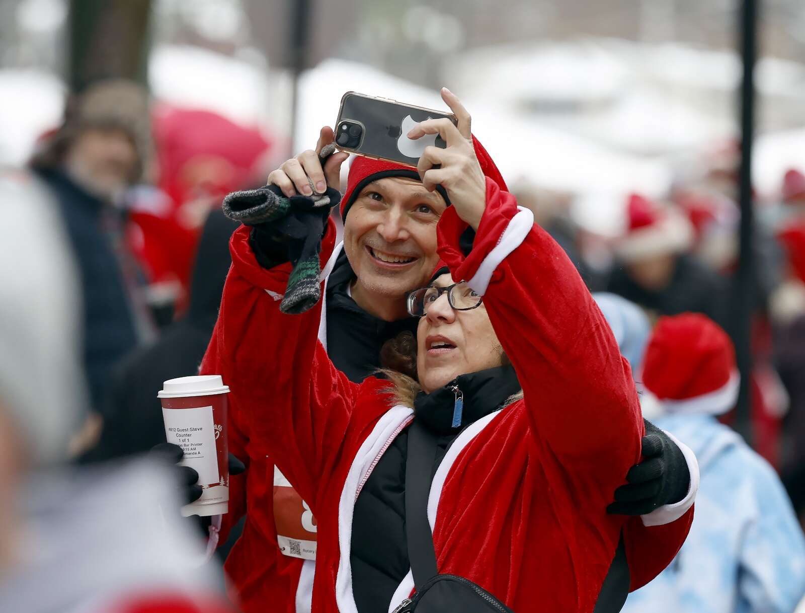 On Saturday, the 20-something couple marked one year together by running in the Rotary Club’s 18th 5K Santa Run/Walk fundraiser. They joined more than 2,000 other enthusiasts, most of whom sported Santa suits and hats and other festive apparel.