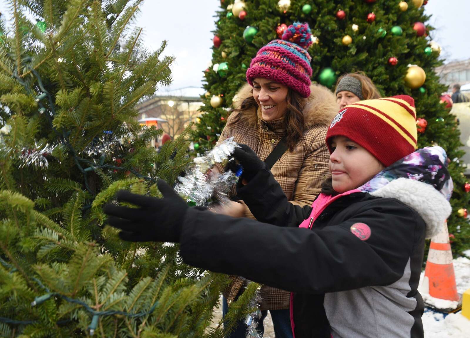 Victoria Caldwell, 8, and her Central School classmates decorated a tree right next to the much-taller city tree as adults from the parent-teacher organization assisted.