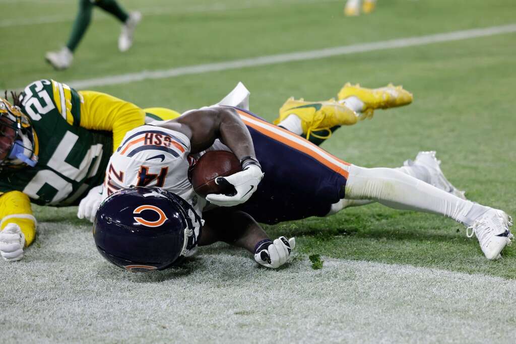 2. Josh dang it: The Bears defense seemingly had Packers running back Josh Jacobs covered on an outside run with the score tied 21-21 late in the fourth. Jacobs, however, blew past several tacklers and raced 21 yards to the Bears 7. Four plays later, the physical back scored from the 2 with 3:32 left.