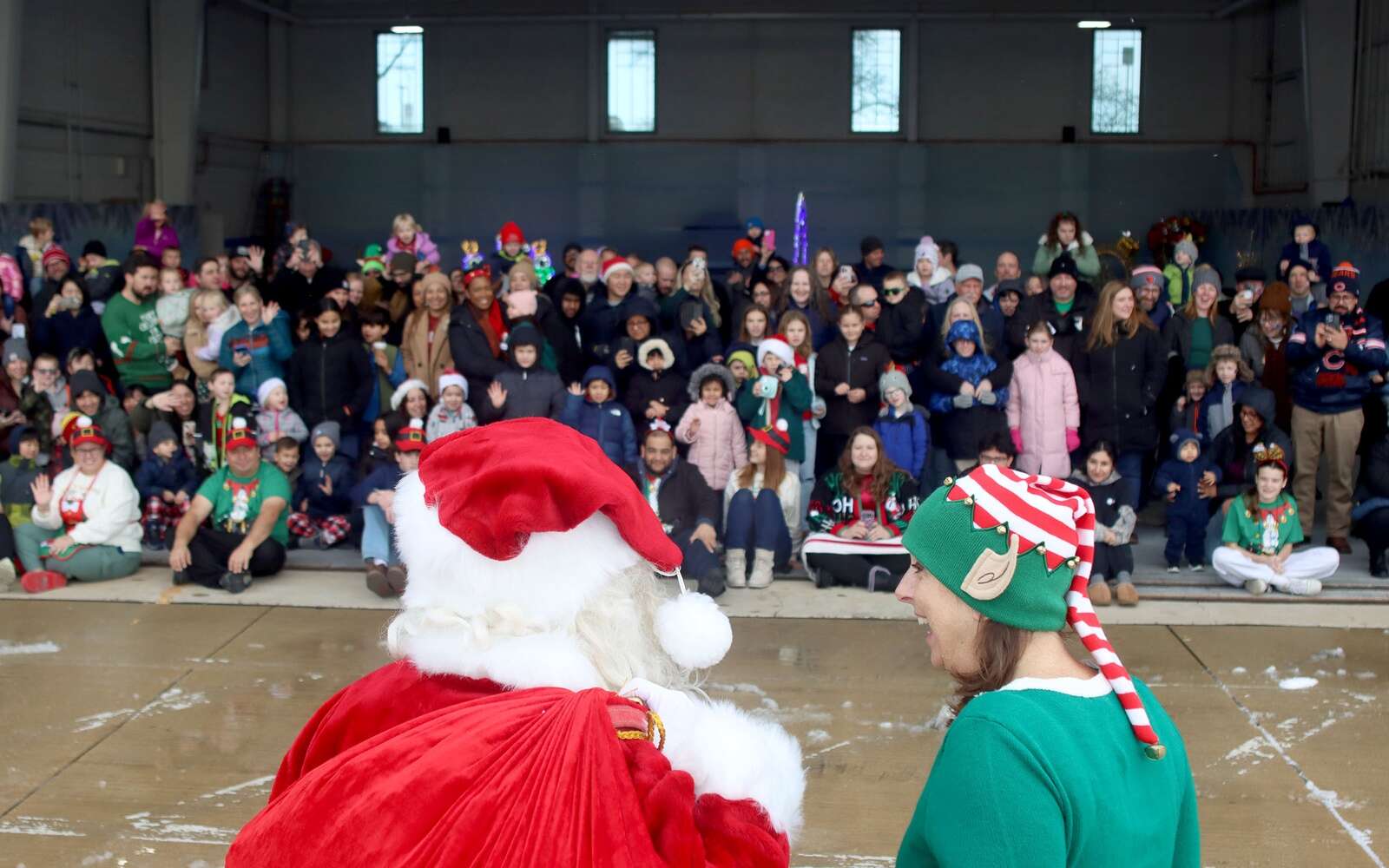 With an adoring crowd awaiting his arrival on the ground, the Jolly Old Elf flew into the Schaumburg Regional Airport by helicopter for his annual visit hosted by the Schaumburg Park District.