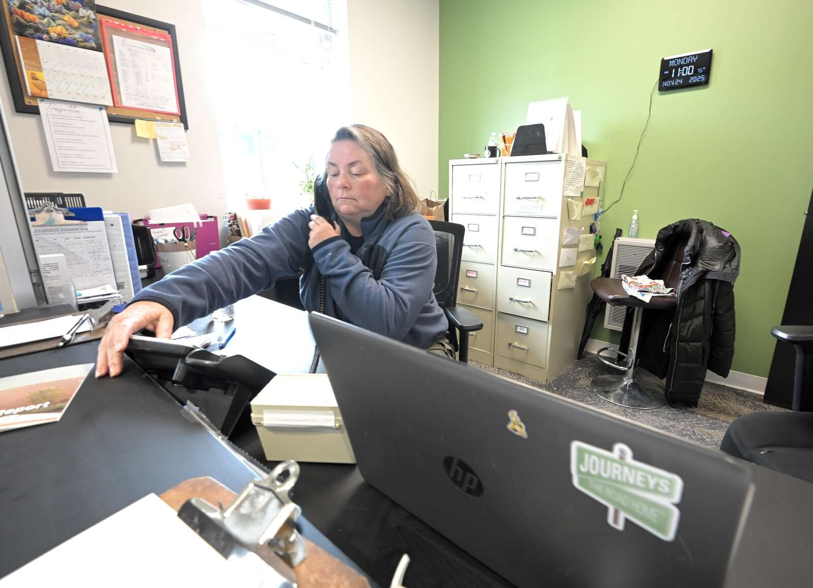 Laskiewicz, whose service includes checking in guests and setting up new clients with paperwork, said she enjoys working with the people who come in.
