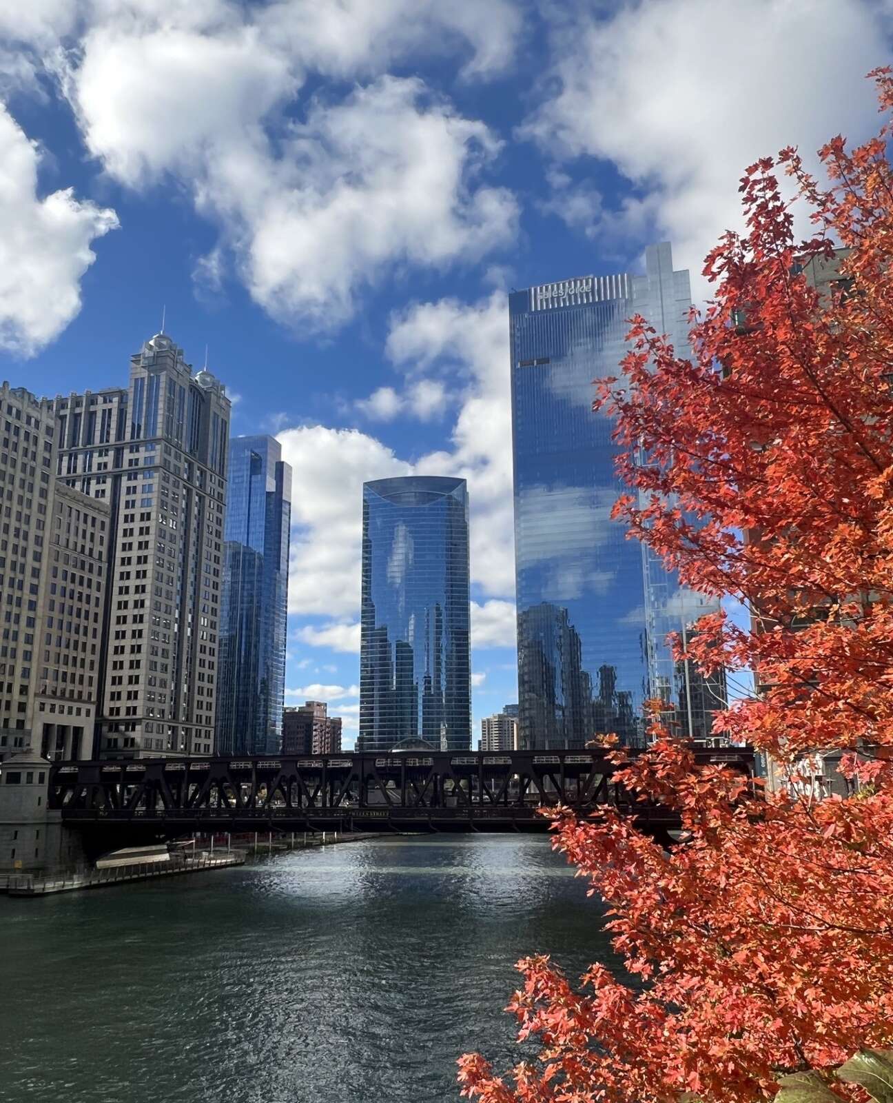 The colors of autumn and a bright blue sky added interest to Deborah Gaden’s cityscape photo, which took second place. “This was a beautiful brisk day to take a walk at the Chicago Riverwalk,” the Mount Prospect resident writes. “I loved the touch of the fall leaves on the tree and the reflection of the clouds and other buildings in the windows. The city of Chicago and the surrounding suburbs have always been a place I call home.”