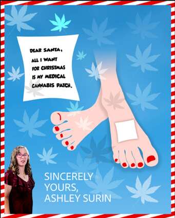 A holiday-themed message has been created for the campaign of the Surin family of Schaumburg to change interstate commerce laws prohibiting daughter Ashley, 19, to continue receiving the medical marijuana patches that prevent her seizures. Courtesy of Maureen Surin