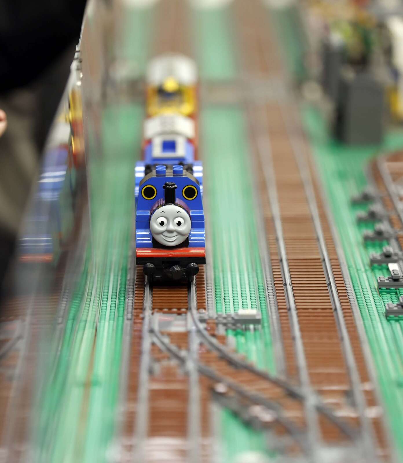 Thomas the Tank Engine makes the rounds during the Northern Illinois Lego Train Club’s exhibit at the Arlington Heights Memorial Library Saturday.