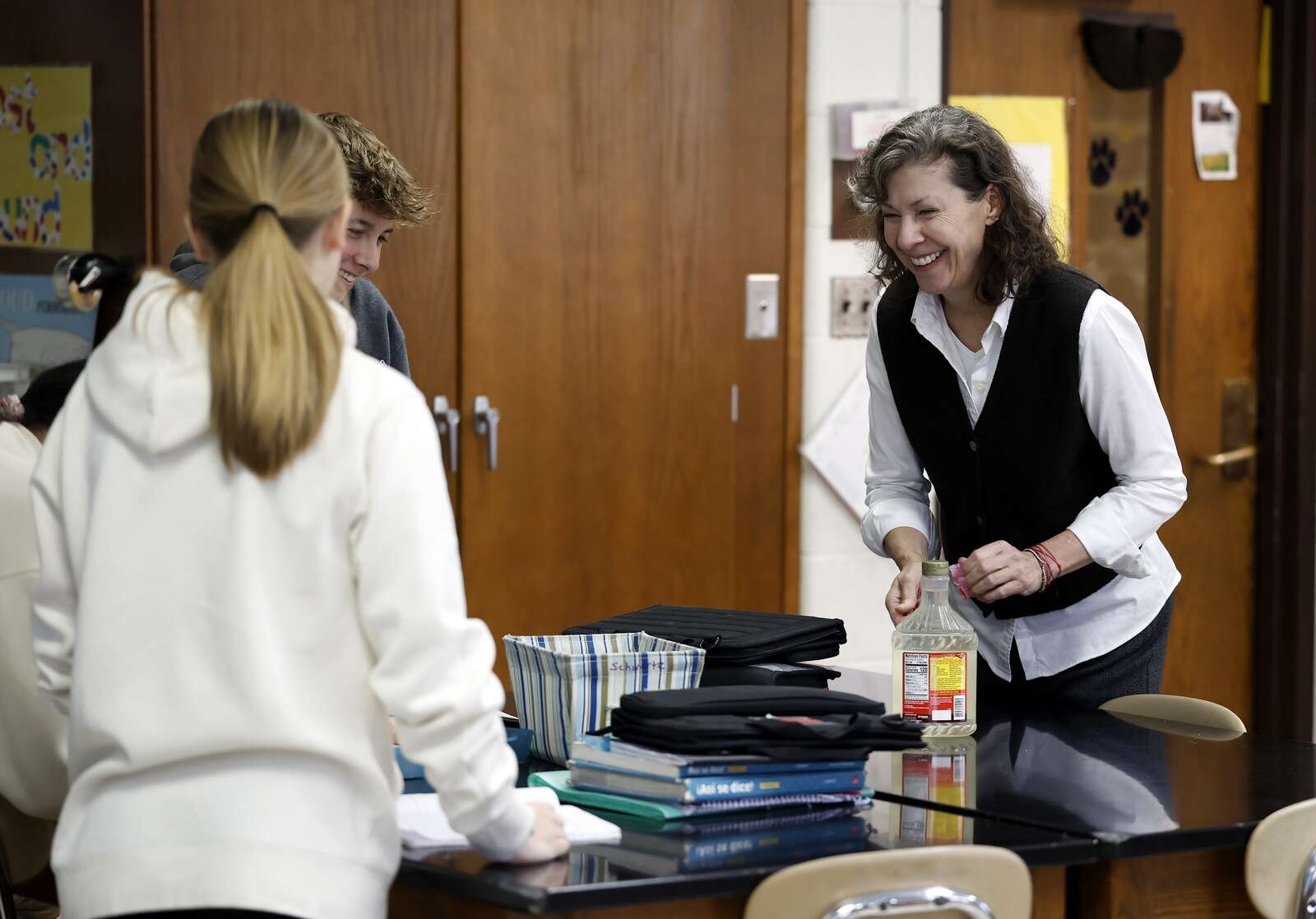 This, actually, is her second career. Schwartz has a background in advertising. Watching her own kids learn in District 200 — “their joy was really affecting” — inspired her to become a teacher.