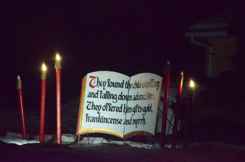 A sign with biblical scripture is among the displays on lawns on Lehnertz Avenue and Lehnertz Circle in Aurora. The drive-through display continues to Jan. 2. Courtesy of Al Benson