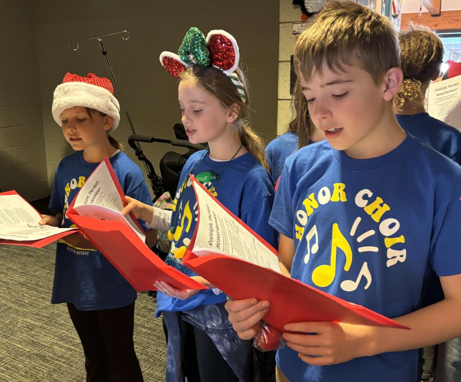 Western Avenue School fifth-graders turned the Community Day Services hallway of the Marklund Hyde Center in Geneva into a holiday concert, caroling for the residents and staff, and filling every corner with cheer.