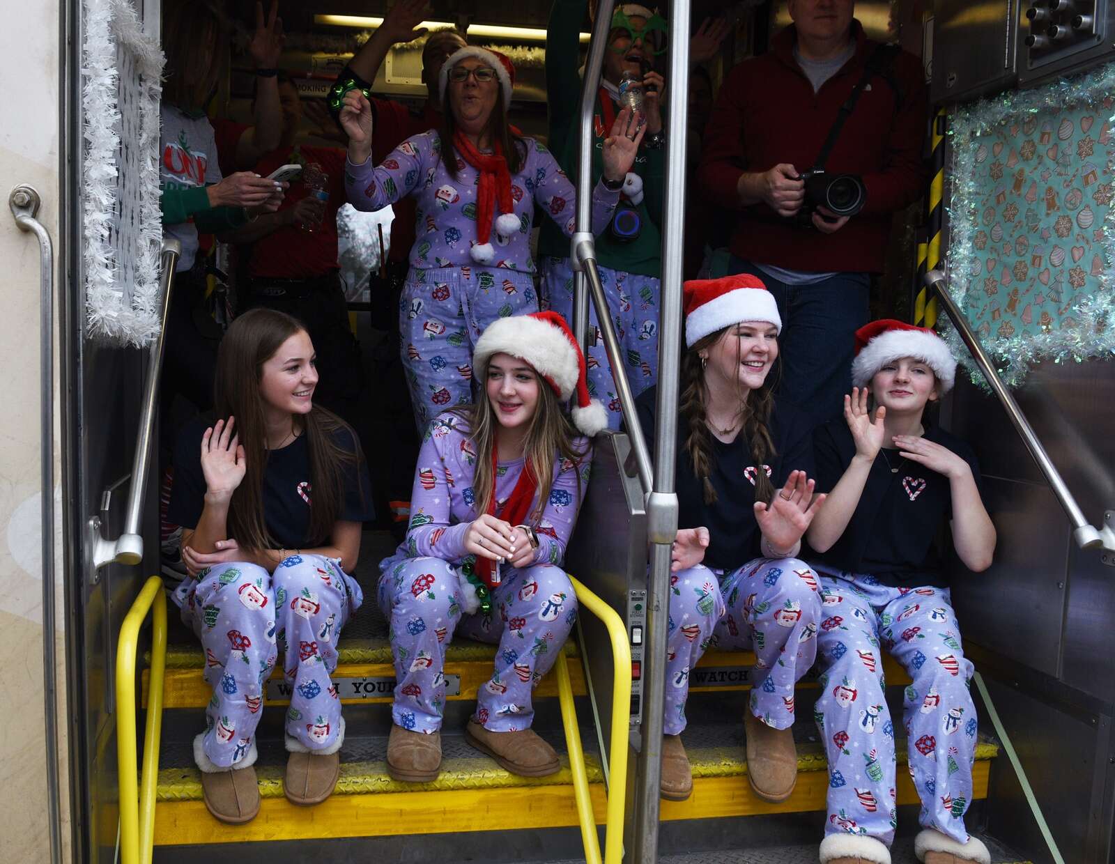 Some were put up overnight at a hotel near the Donald Stephens Convention Center in Rosemont, where the festivities started early Saturday morning with children clambering on fire trucks and engines. There was a lights-and-sirens procession to the Metra station in downtown Des Plaines, then the ride to and from Crystal Lake. The outside of the train was a “The Nutcracker” theme. Inside, the cars had themes, such as “The Grinch,” “Candyland” and a Disney car.