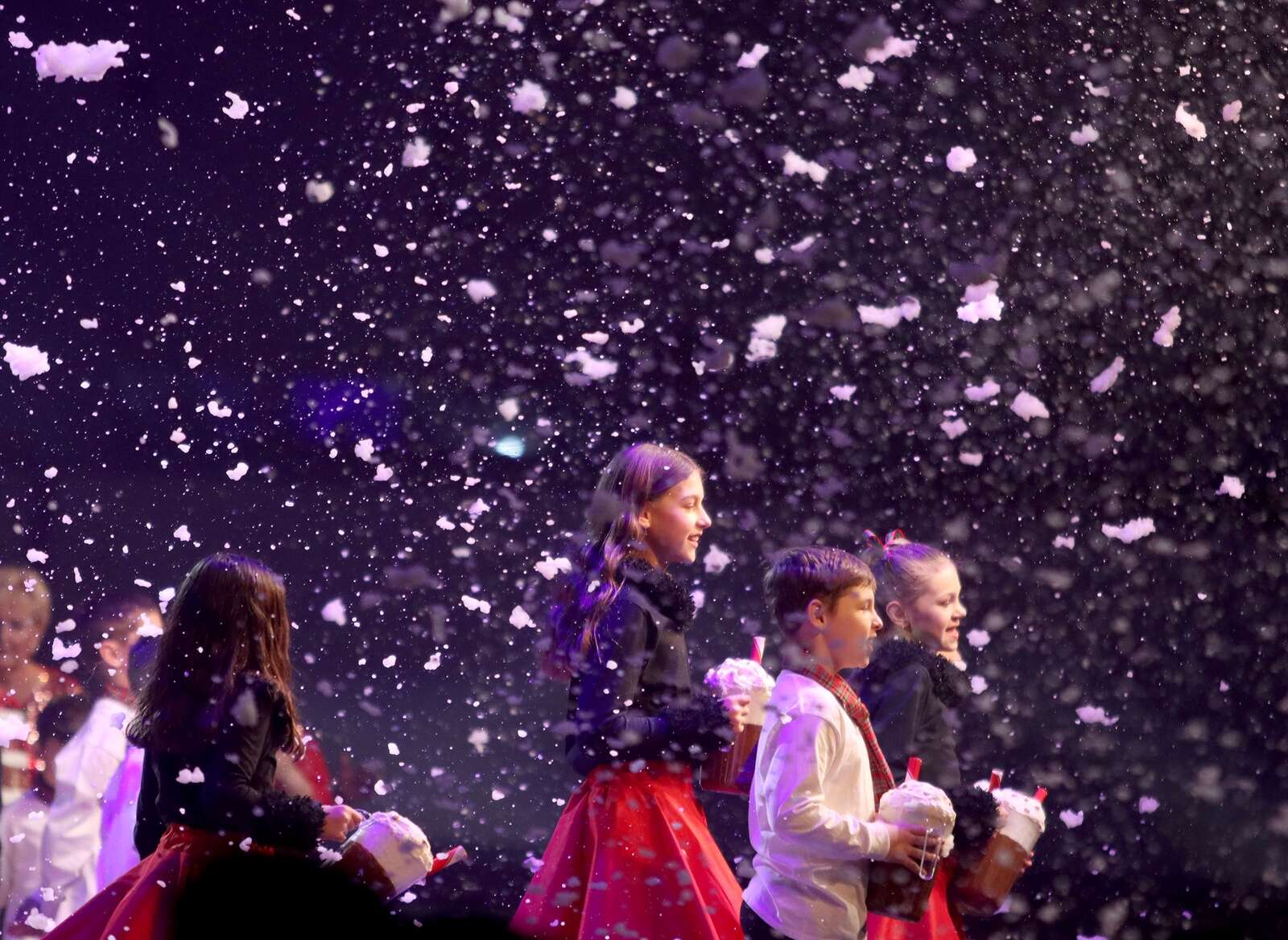 Children sing during an opening act which features simulated snow at the annual Christmas pageant presented by the Quentin Road Baptist Church Sunday. Patrick Kunzer/for the Daily Herald