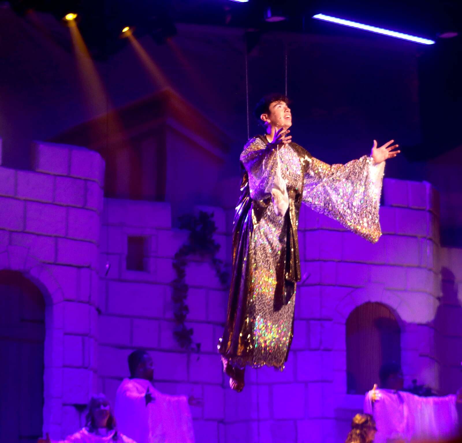 An angel appears from above at the annual Christmas pageant performed at the Quentin Road Baptist Church in Lake Zurich Sunday. Patrick Kunzer/for the Daily Herald